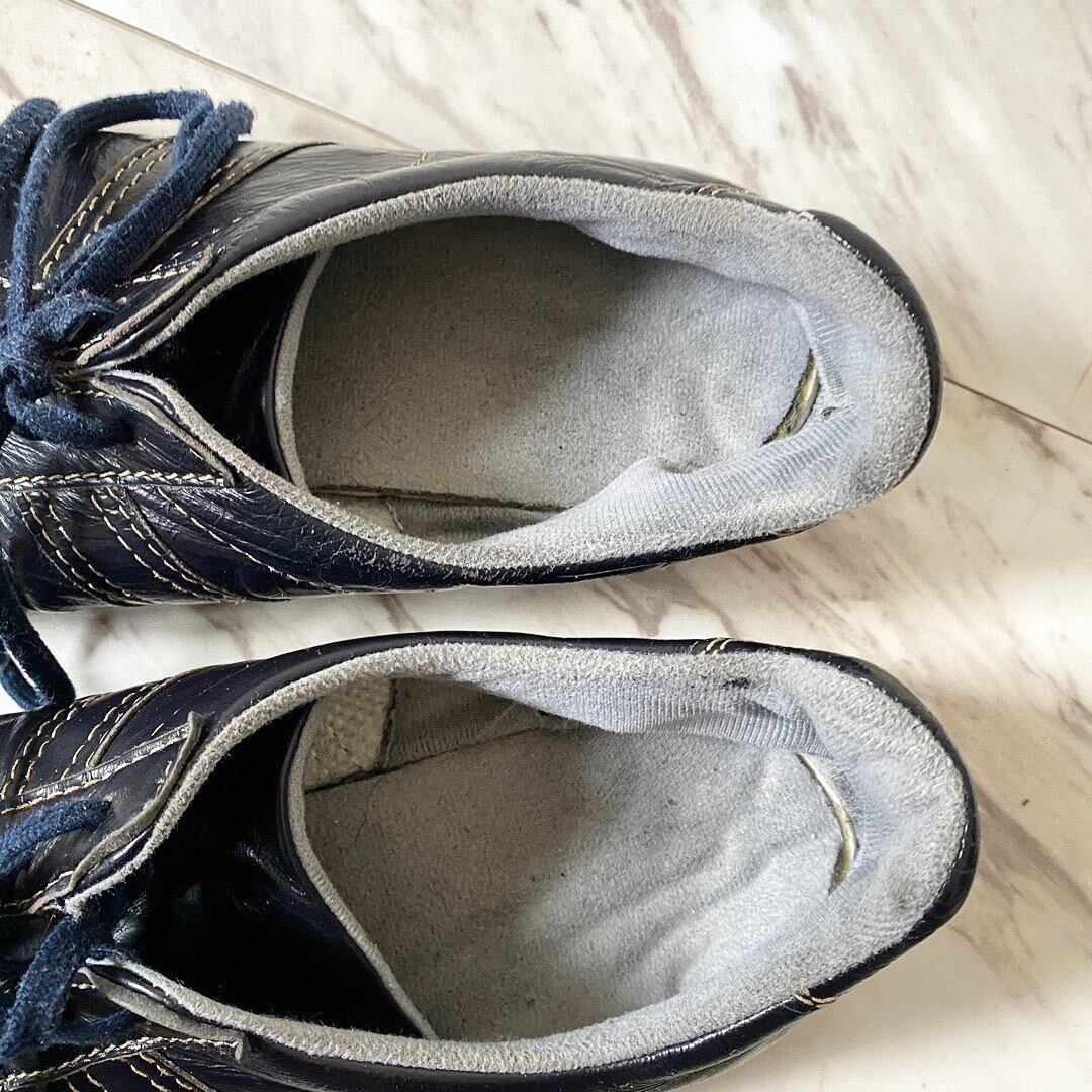 左足の左爪先側に若干の擦れ 内側に小穴 爪先に若干の剥がれ ソール若干外側が擦れているだけでほぼほぼ擦れていません