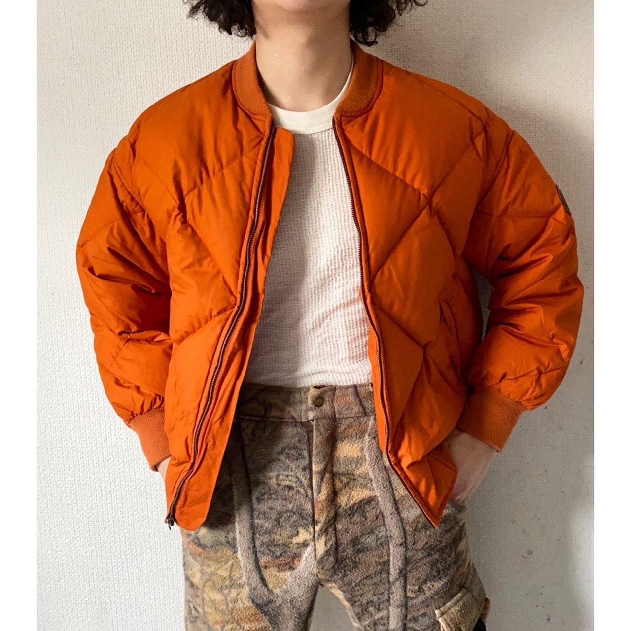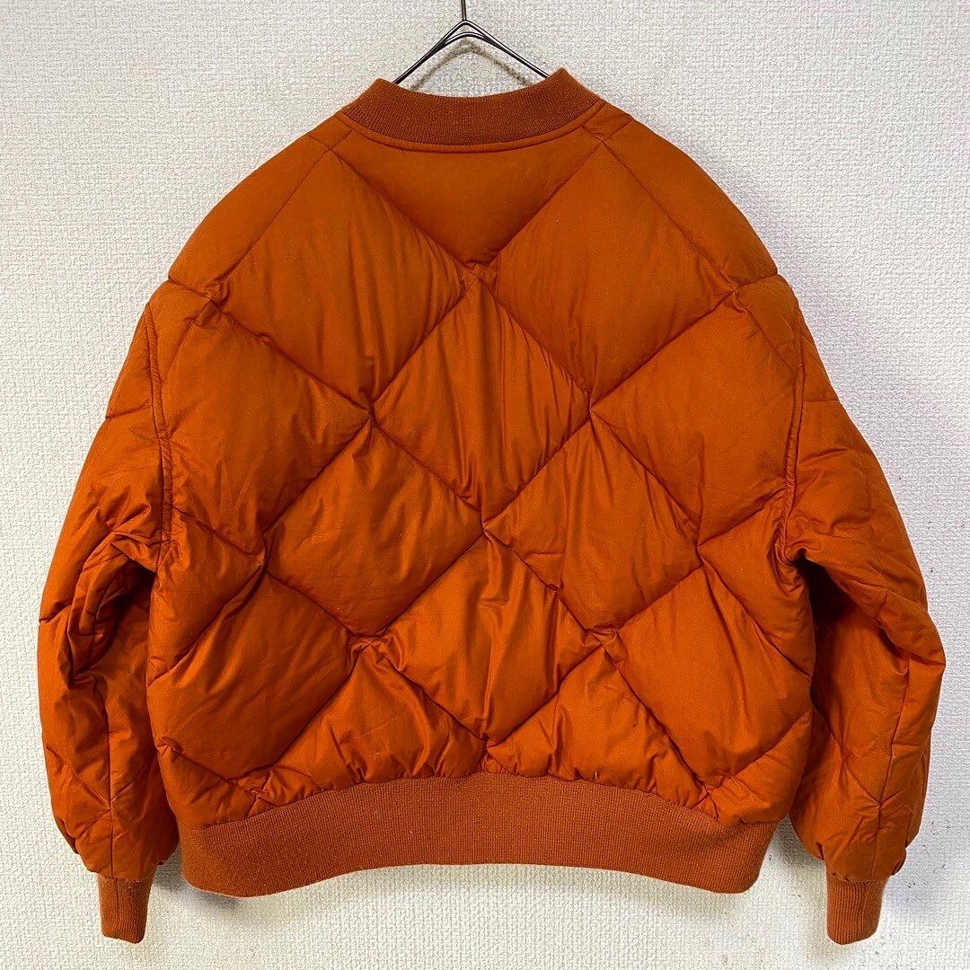 燻んだオレンジ、"テラコッタカラー" 良い色味です 中綿入りのパデット仕様 着丈と身幅がほぼ同じの真四角シルエット ダイヤ型のキルティング