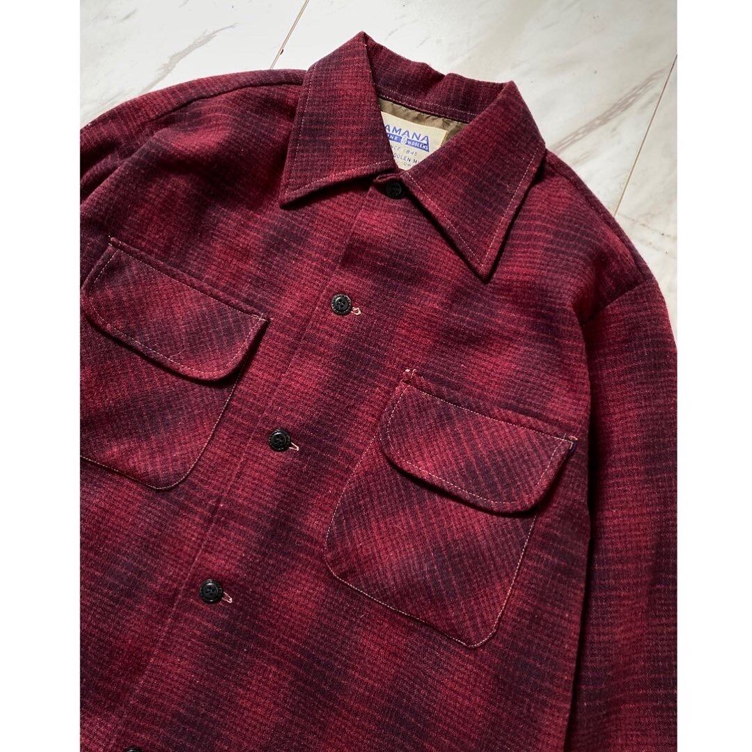 およそ70年〜60年前のウールシャツ 暗めの赤×ブラックのオンブレパターン 15 1/2で縮みもほぼ無しの大きく着れるサイズ