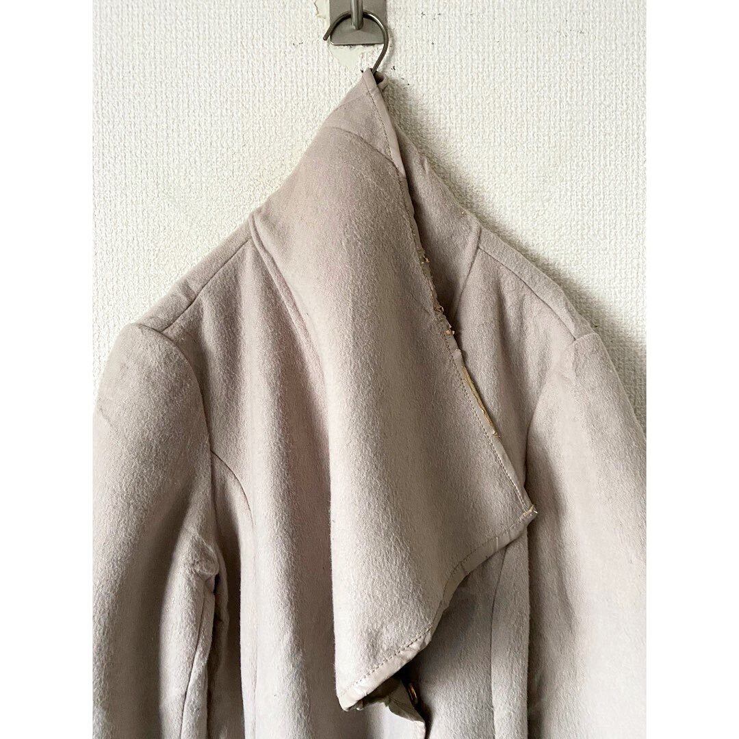 印象的な特大変型襟 ベージュに淡い紫を掛け合わせた様な色味 ベルト付き ふわふわとしたウールポリ地の一枚地 スプリングコートとしても機能します