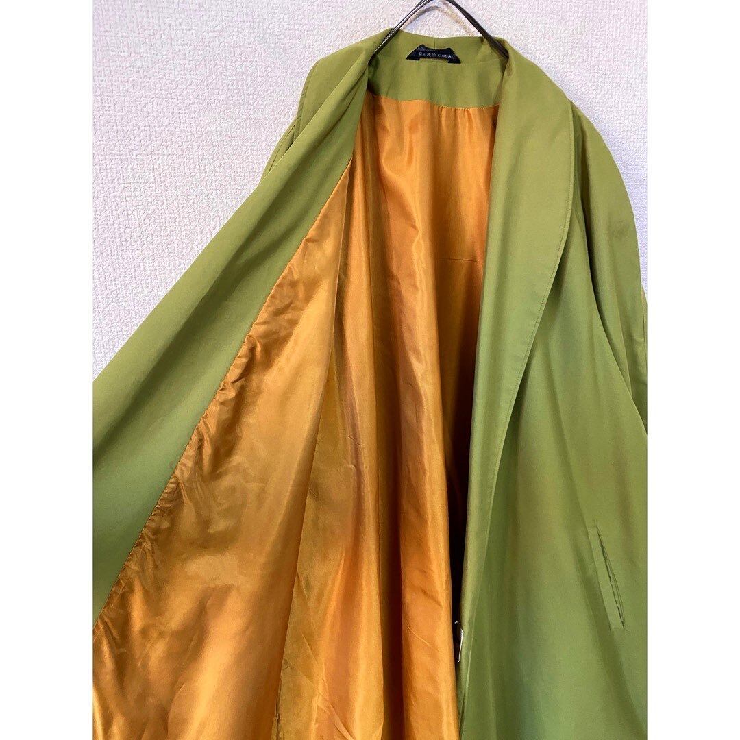 人と被らないライムグリーンカラーが綺麗なポリ羽織コート ベルトループ付き ベルトでシルエットに緩急を付けられます 裏地のオレンジも良し