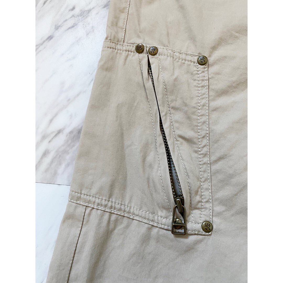 優しいアイボリーカラー サイドポケット他にジップポケット 程良くフレアしたシルエット 腿あたりから裾にかけてサイドに紐が付いており、形を変える事が出来ます