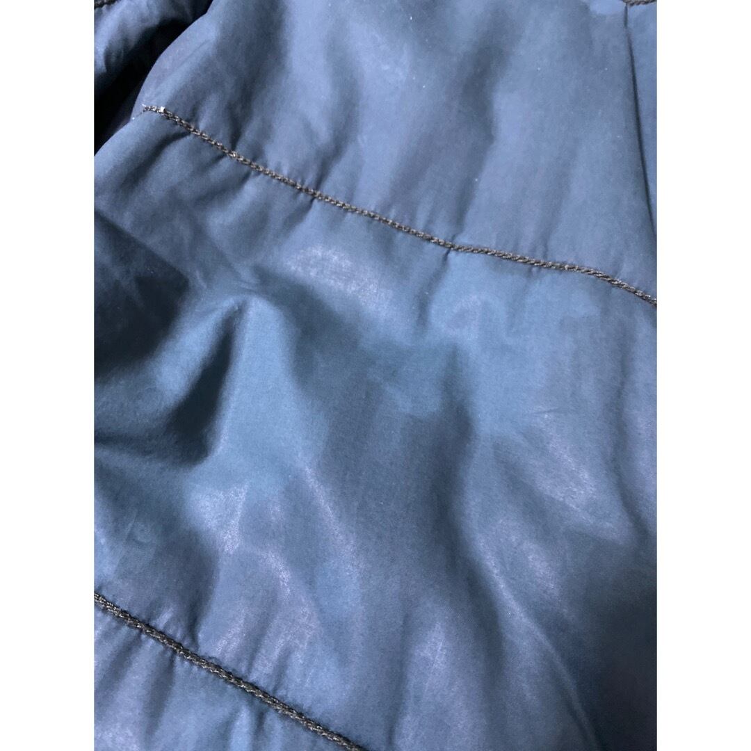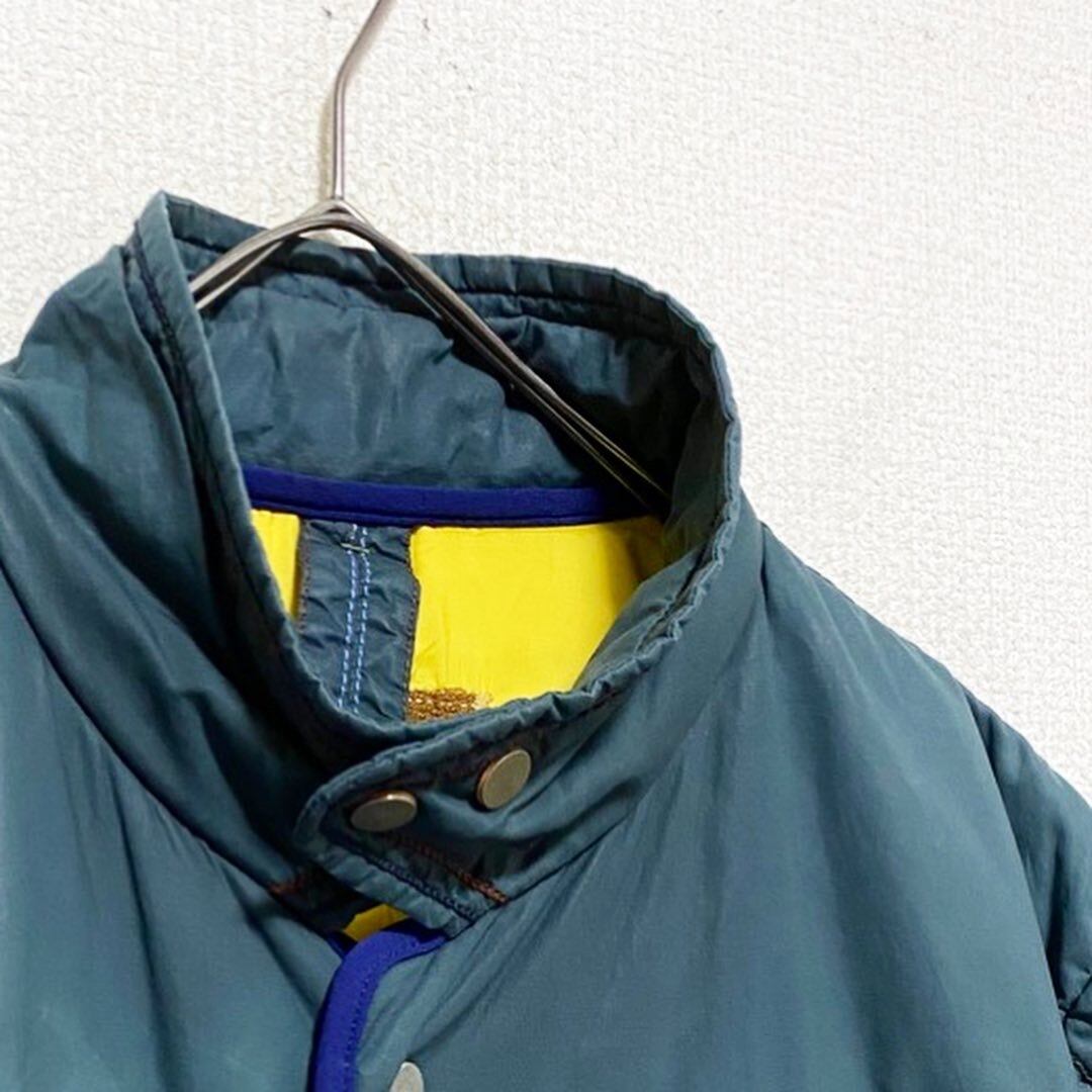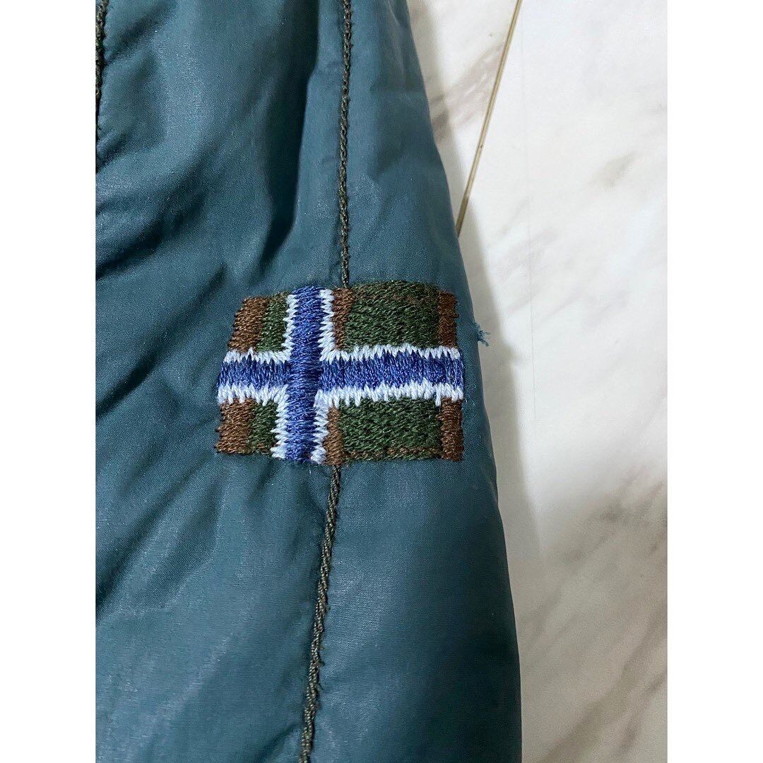 奥行きのあるネイビーとグリーンを合わせた様な見た事のない色味 オリーブ、オレンジのステッチが映えます スタンドカラーとしても使えるスナップ付きの丸っこい襟 アームにはお馴染みのデンマーク国旗の刺繍ロゴ