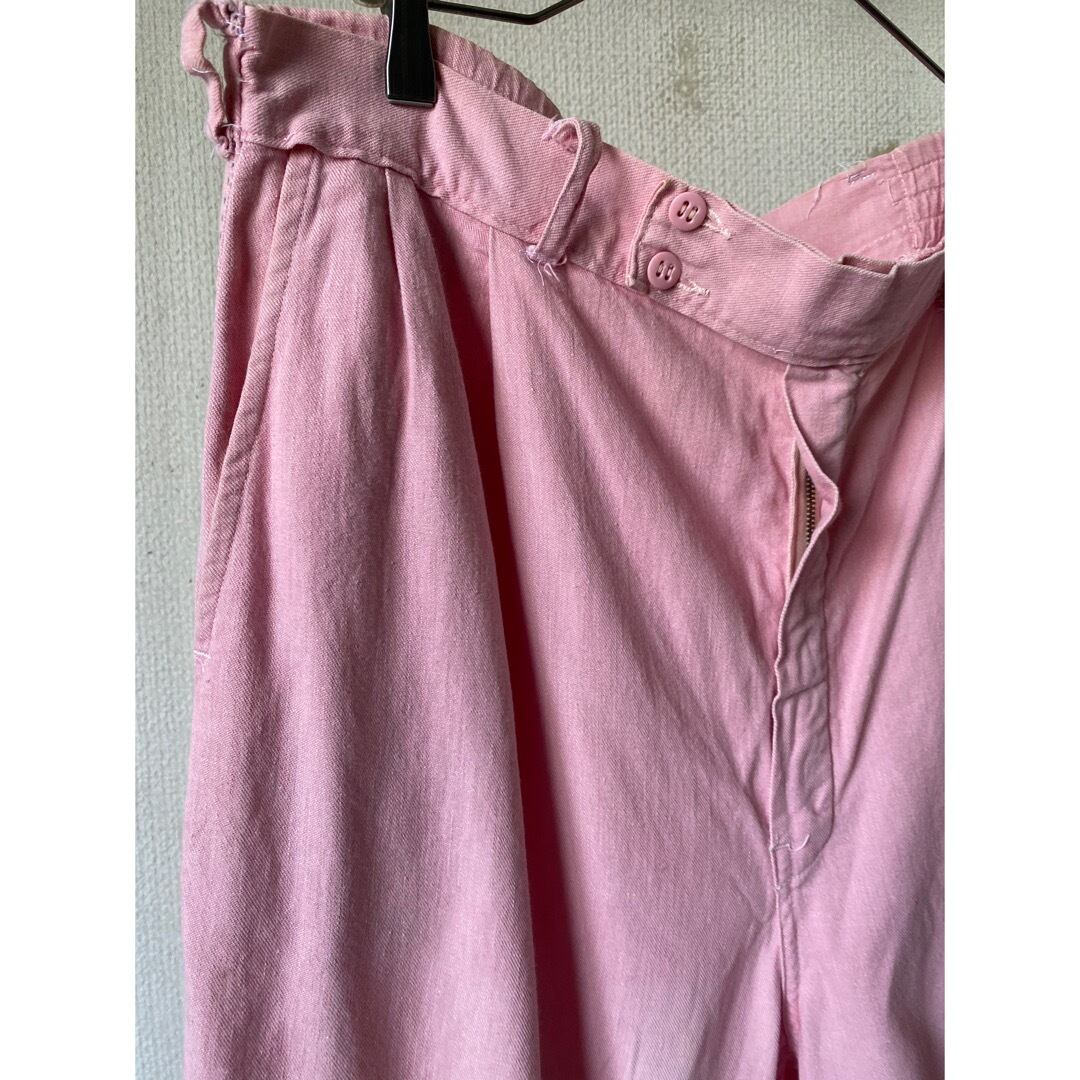 およそ70年前のワークパンツ コットン100%だとは思いますが、ぷるんぷるんと風に靡く柔らかい生地となっています イメージとしてはスラックスとワークパンツの間の様な素材感