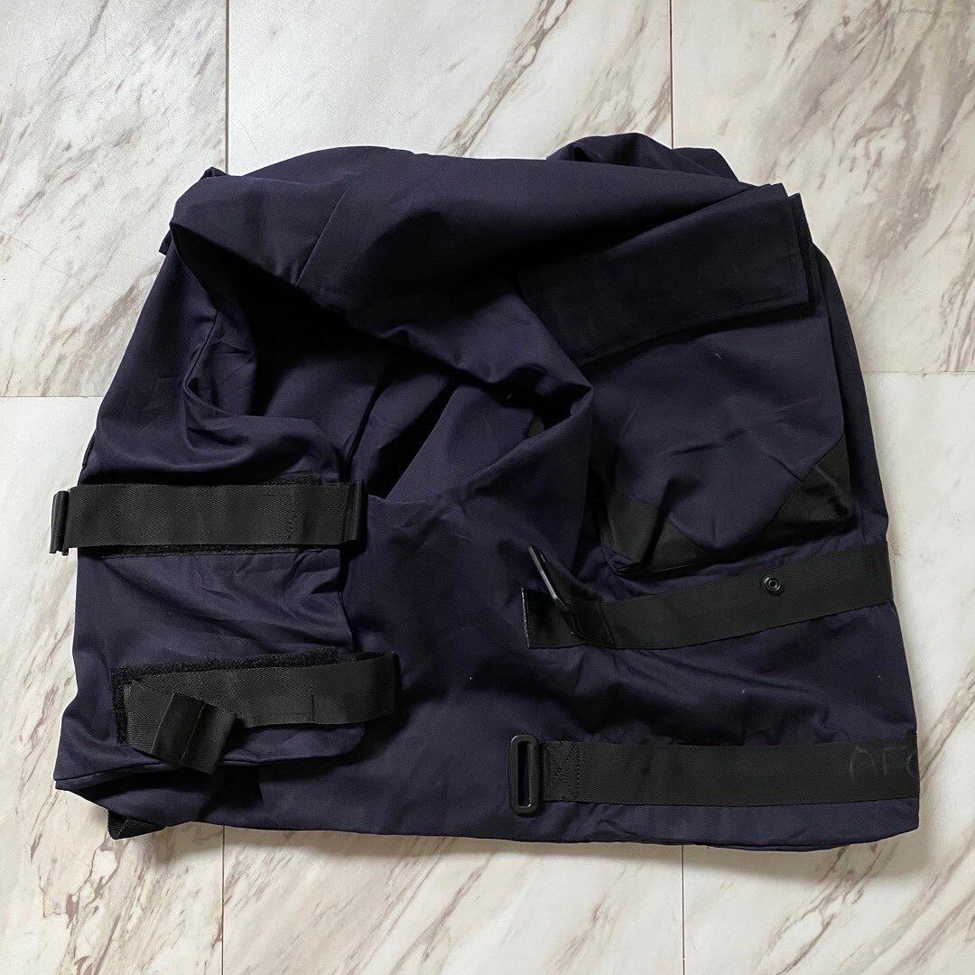 前後にあるマチ付き立体ポケットは鉄板を入れて、銃弾を防ぐ役割 サイドにアジャスター ネイビーパターンは中々出てきません