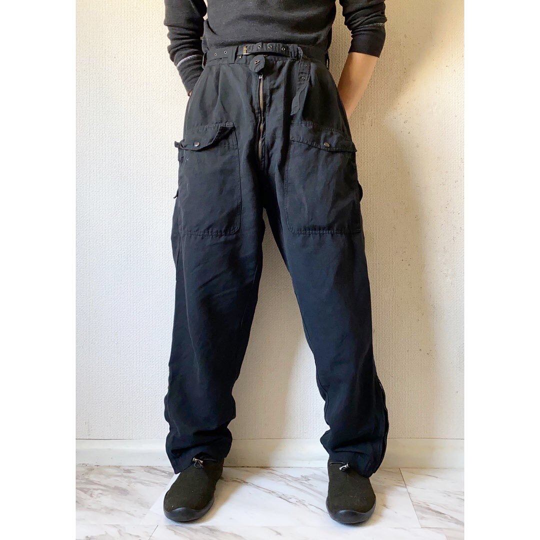 イタリア空軍のパイロットが着用していた、元々セージグリーンのパンツを黒染め、"オーバーダイ"