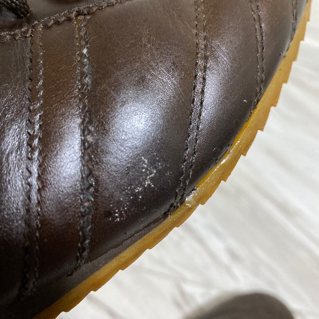 アッパーに小傷、小汚れあり ソール縁に若干の浮きが見られますが、おそらく全体が強めの接着剤で固定されており、自分がusedで購入後10回以上使用していますが剥がれる恐れはありません