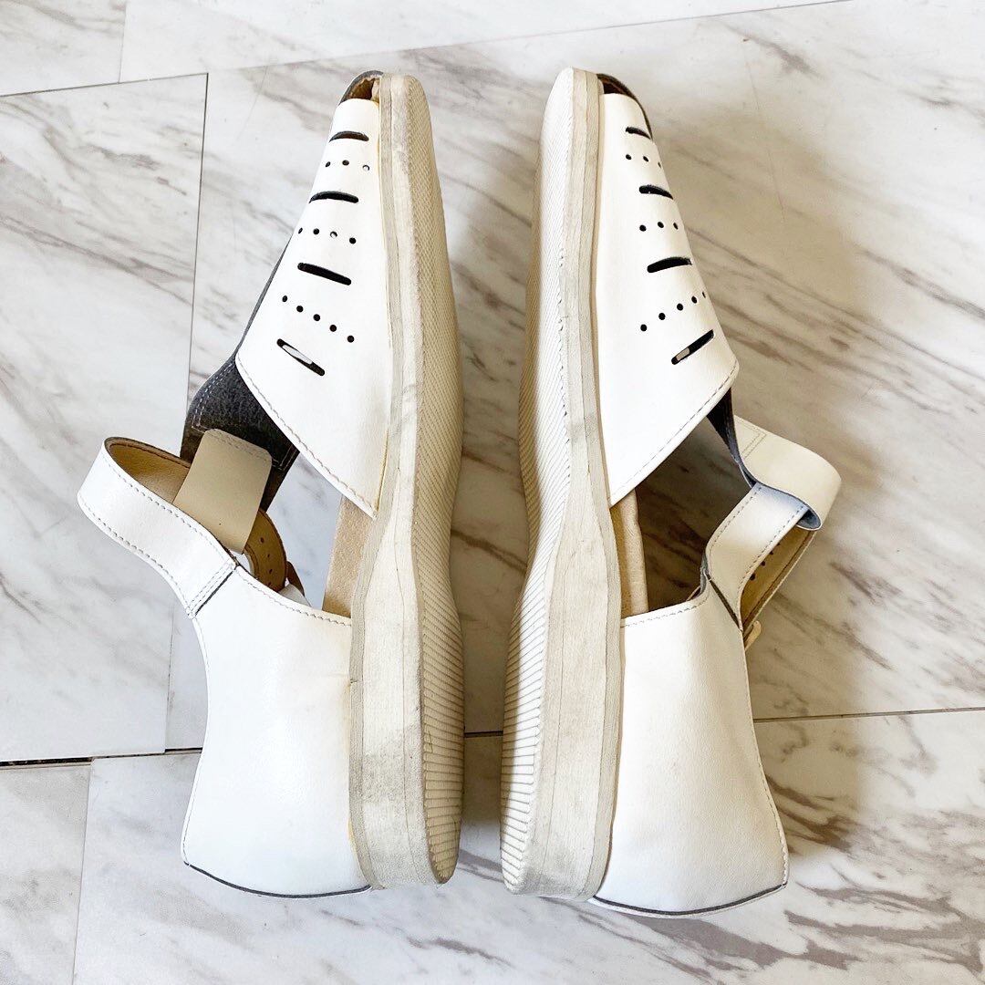 クッション性に富んだソールも快適 ストレスレスな履き心地 清潔感と気品溢れる ホワイトカラー 今やメゾンも用い チープな印象が払拭され高級志向かつデイリーな物へと昇華された 所謂 シンセティックレザー (合皮) をアッパーに使用クラシカルなパンチングデザインも良いですね