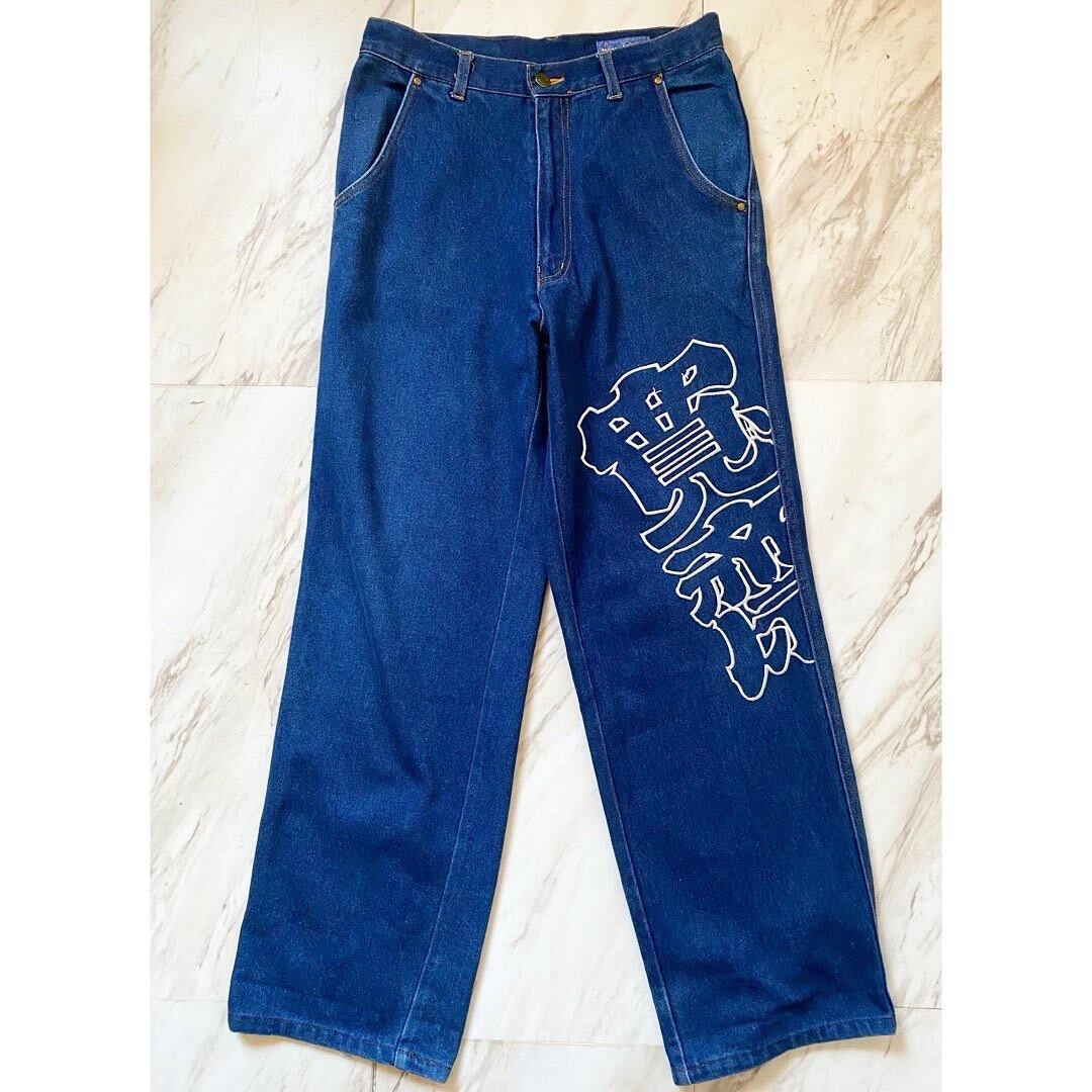90s 00s kansai yamamoto embroidered wide indigo pants