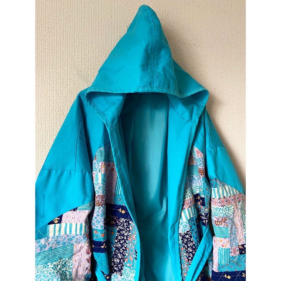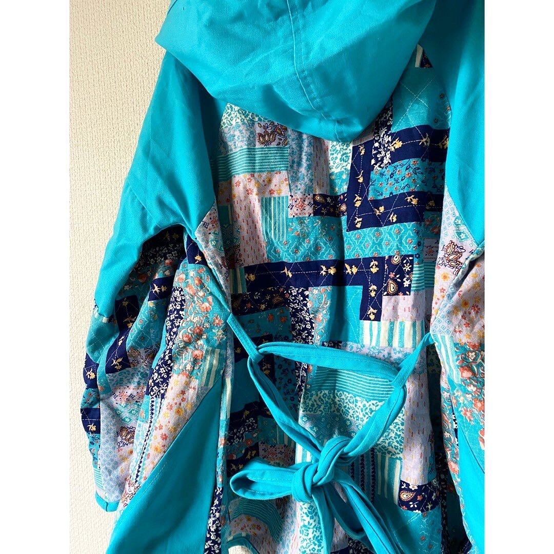 vintage hand made turquoise blue patchwork haori jacket