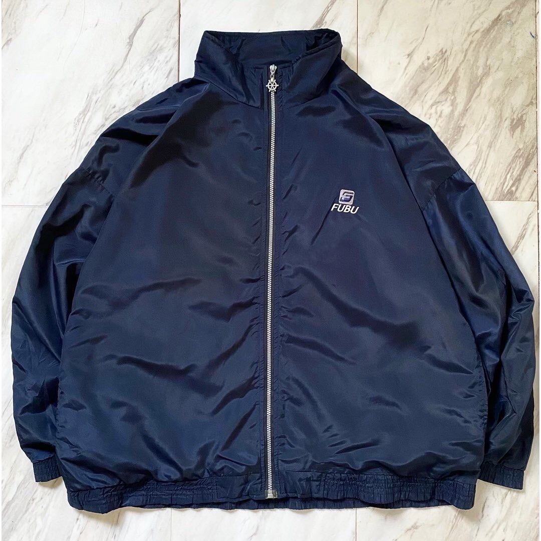 90s made in usa fubu poly nylon dark navy high neck zip up blouson