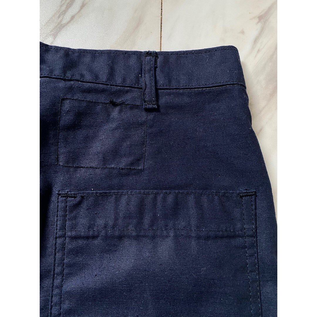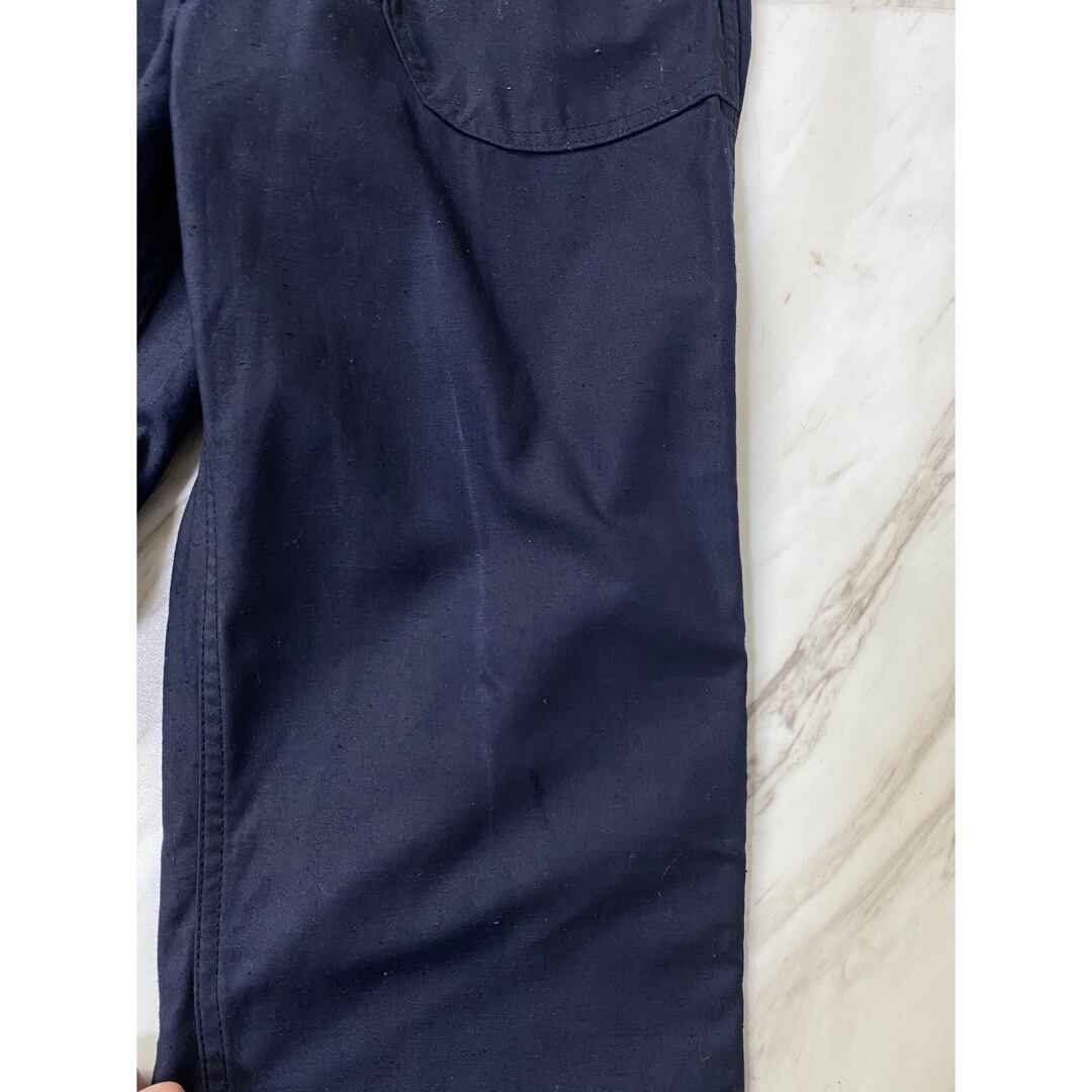 デッドストック未洗いなので、保管時の若干の土汚れの様なものがございます。ポケット付近など。若干のセンタープレス後。その他少しのほつれ糸