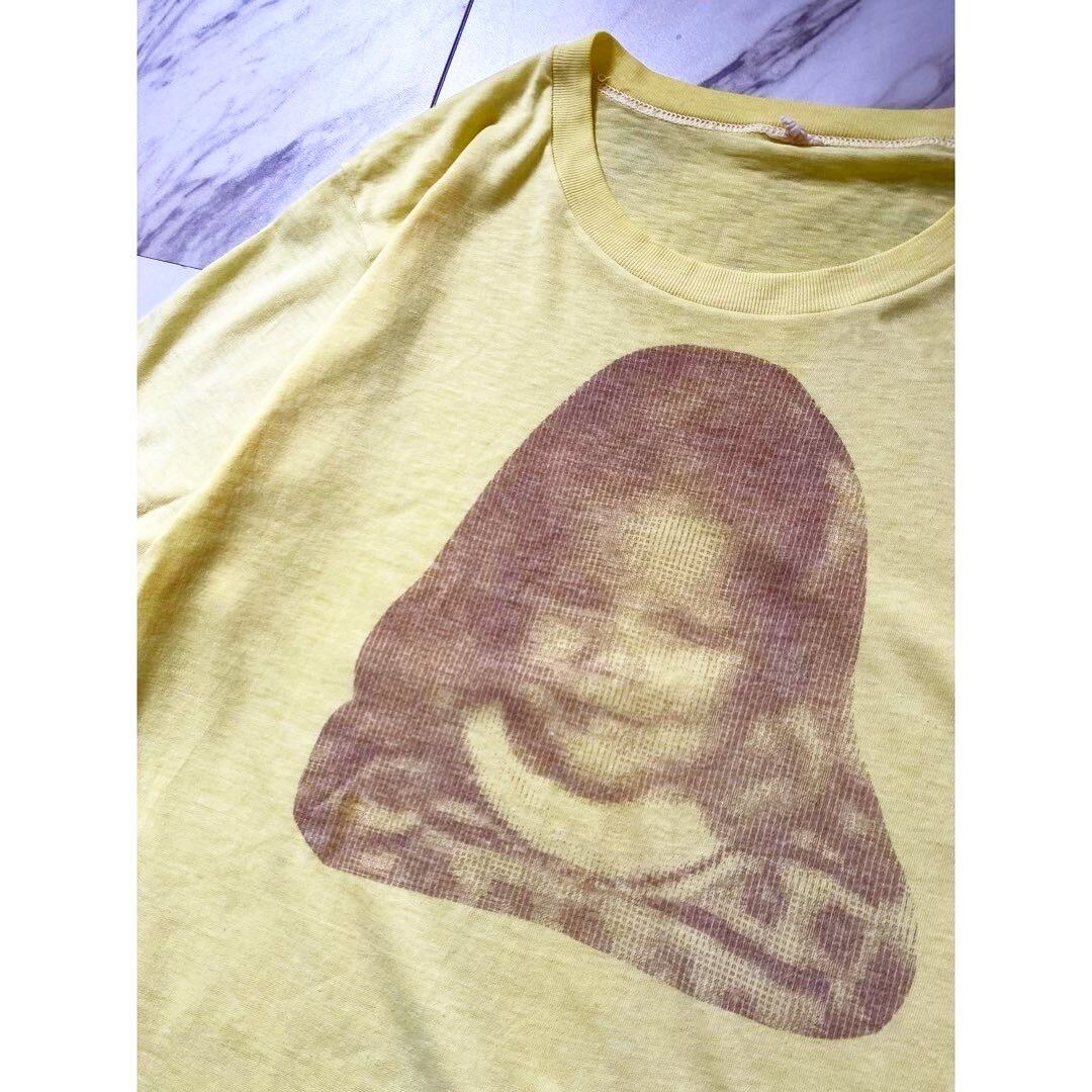 vintage 70s〜80s cotton poly light yellow girl print tee