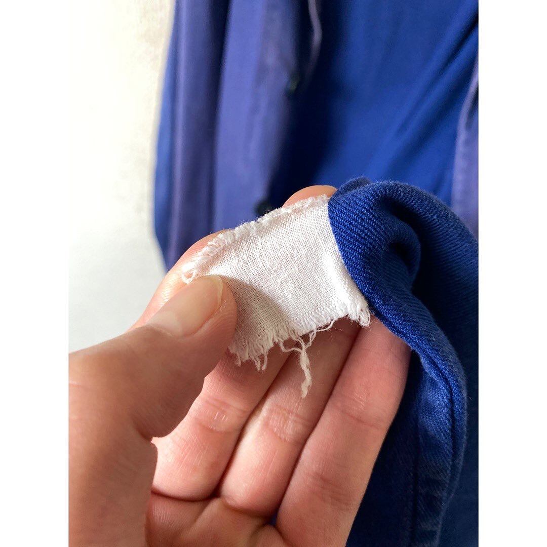 日焼けをしていない裏地を見てもらえると分かりますが、元々の鮮やかなブルーの表面が日焼け、退廃して綺麗なフェードした"ナス紺色"となっています 長い月日を経て雰囲気抜群の一品となりました 化学では確実に出来ない色の濃淡