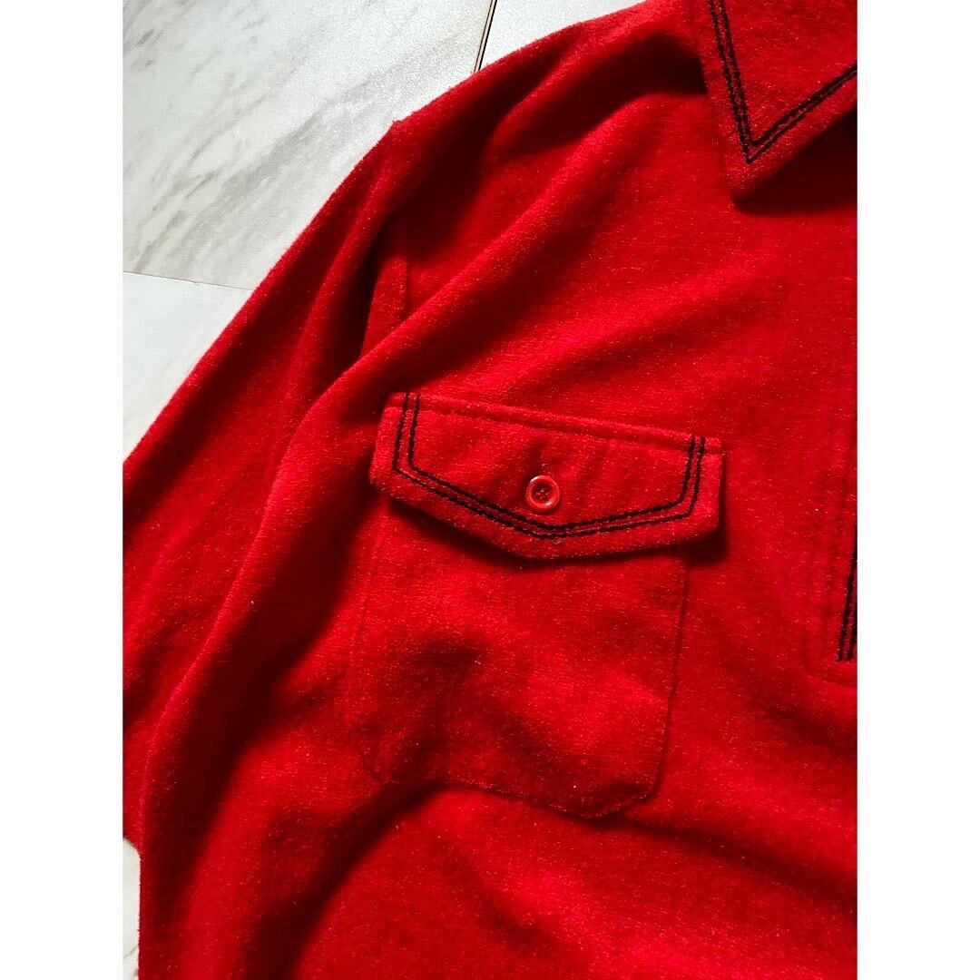 真っ赤のパイル地に黒のステッチが映えます プルオーバーのハーフジップと言うところも良い