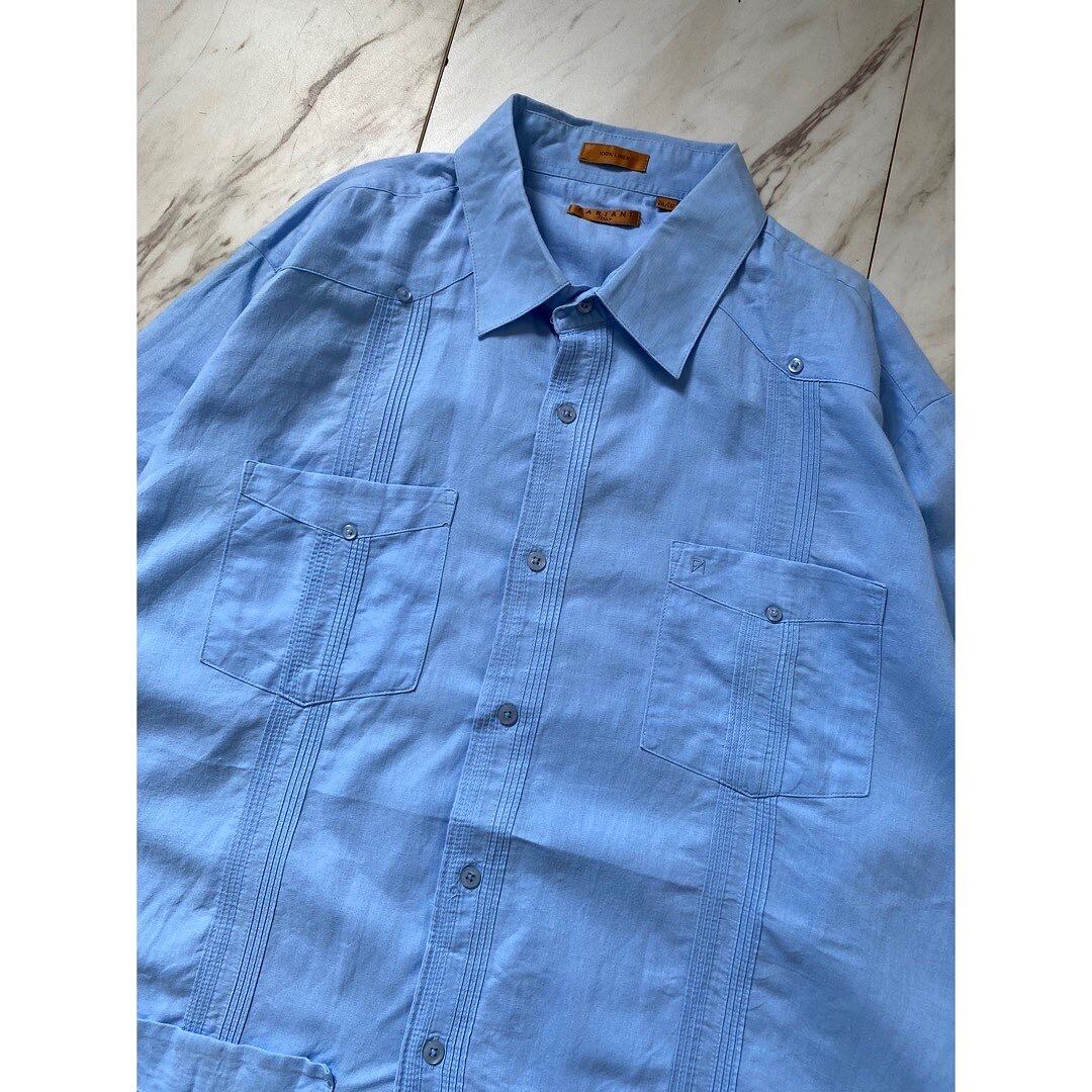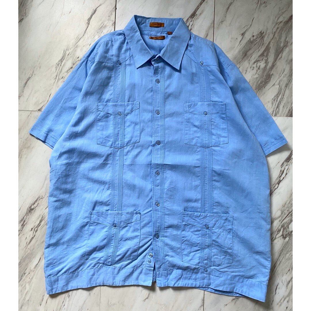 90s linen 100% light blue embroidered cuba shirt "xxl over size"