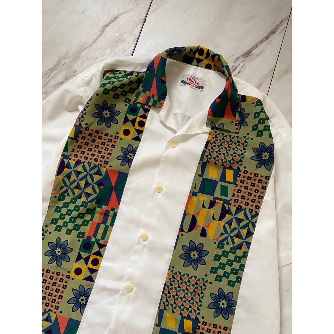 フラップ付きのオープンカラー アンニュイなテイストの2ライン 襟裏まで柄