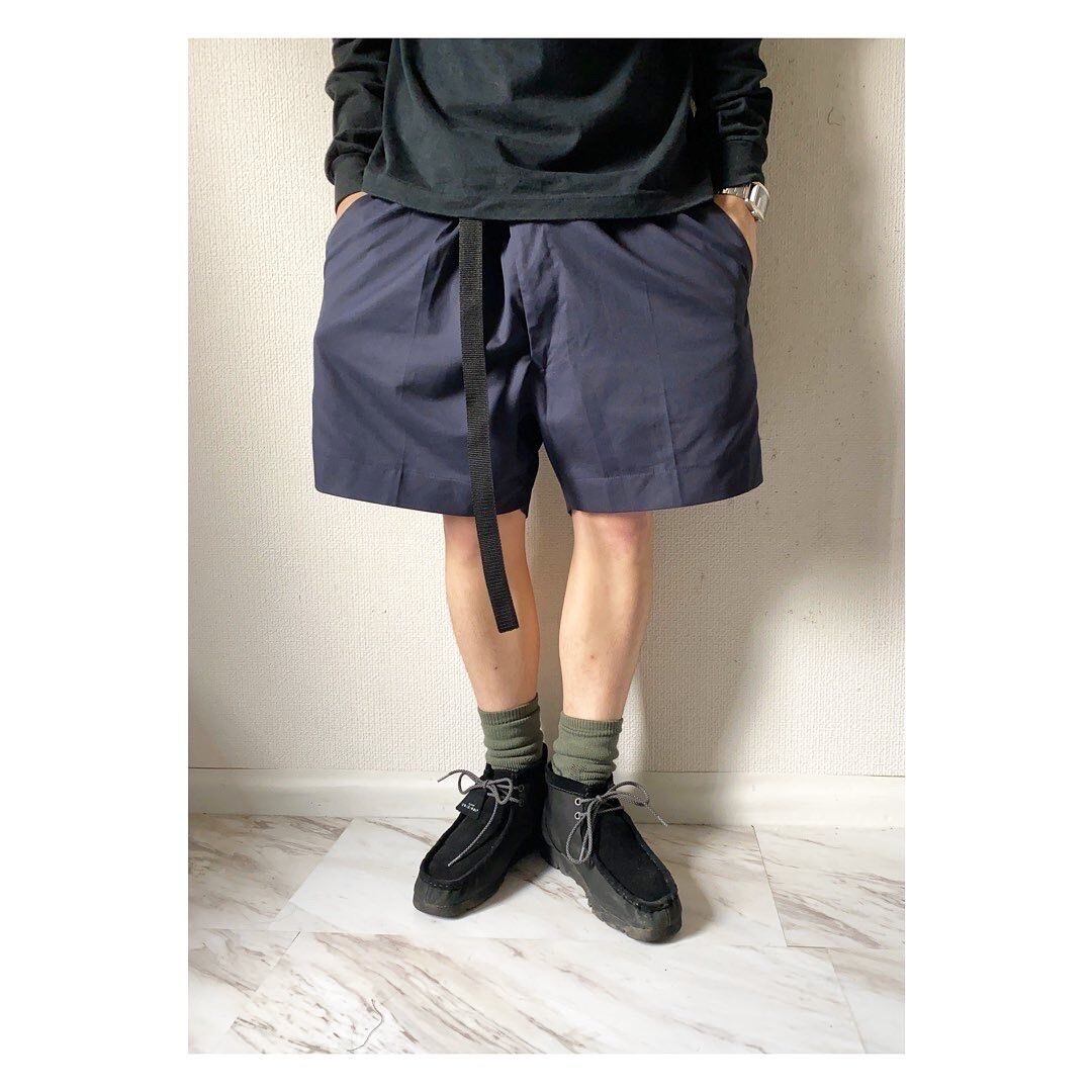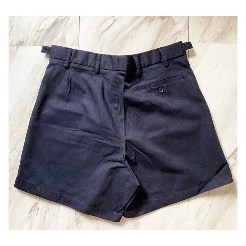 軍モノとしては珍しいネイビーカラーのチノクロスショーツ ウエスト周りにボリュームを出すタック入り 太めで短めのシルエット