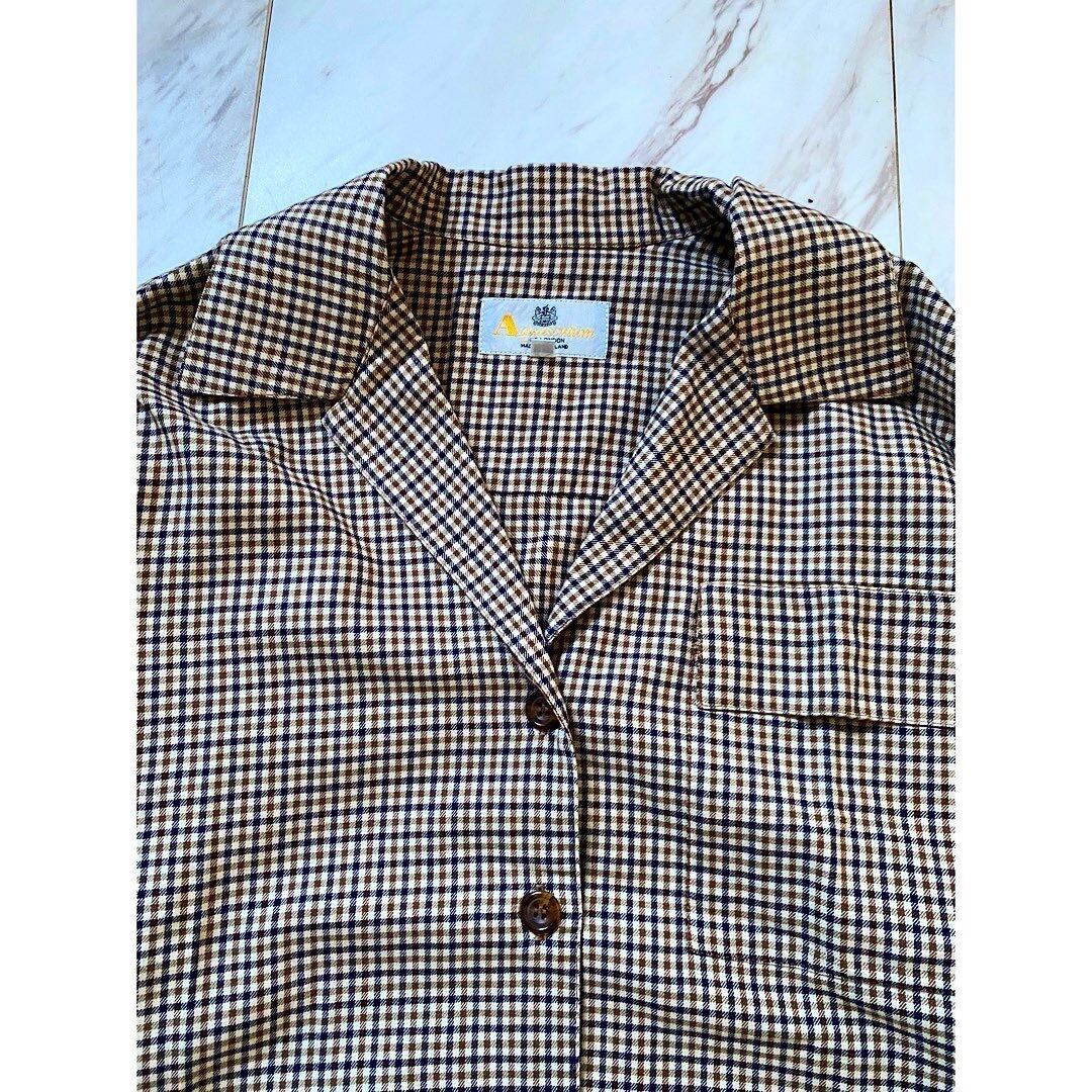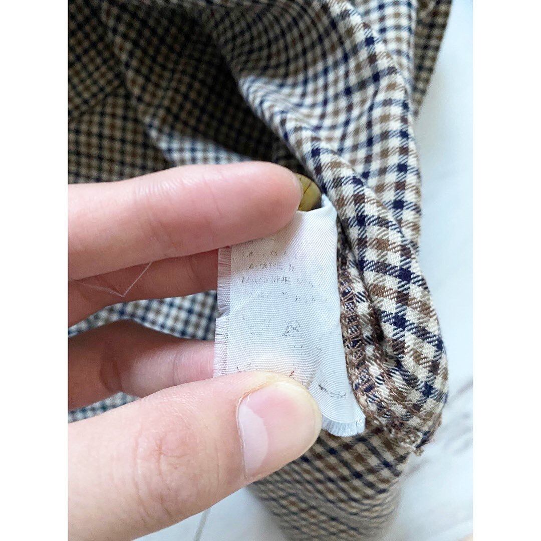 何故かレディース合わせ かなり深めのオープンカラー スキュータムチェックに鼈甲のセルボタン どこか"パジャマ感"を感じる程良いアンニュイなテイスト具合
