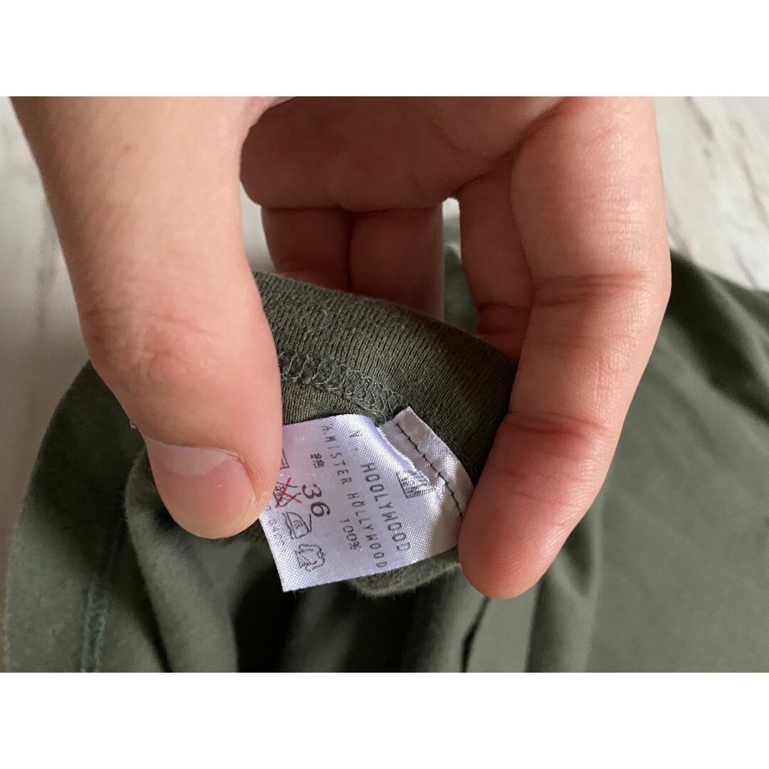 オリーブにグレーを少し混ぜた様なセージグリーン 36サイズの方は良い感じに色が変化して、濃い目のオリーブとなっています
