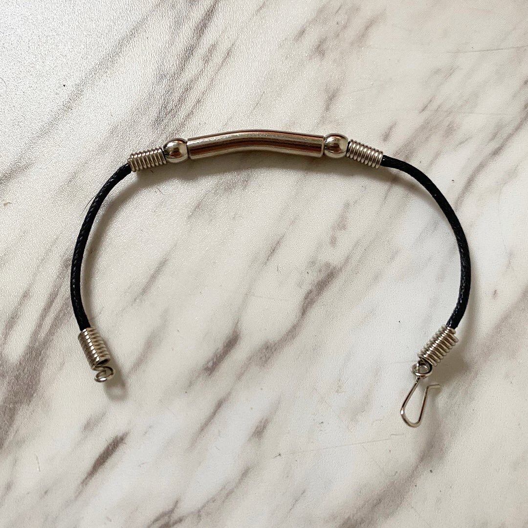ボーン、骨型の金属部分とコーティングされたレザーの様な紐部分との相性がとても良い