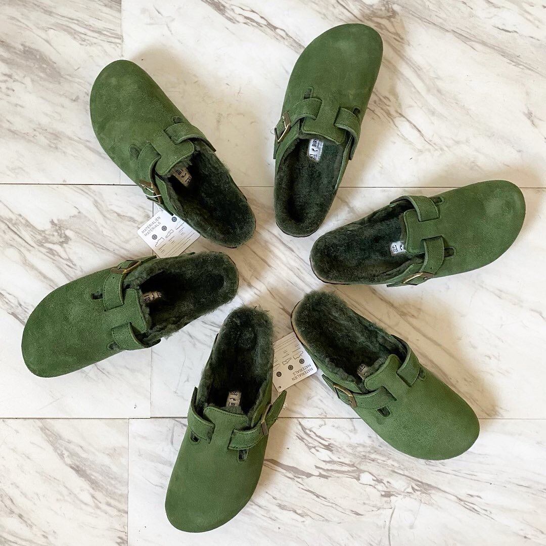 BIRKENSTOCK Boston Shearling /ボストンシアリング moss green suede leather shoes