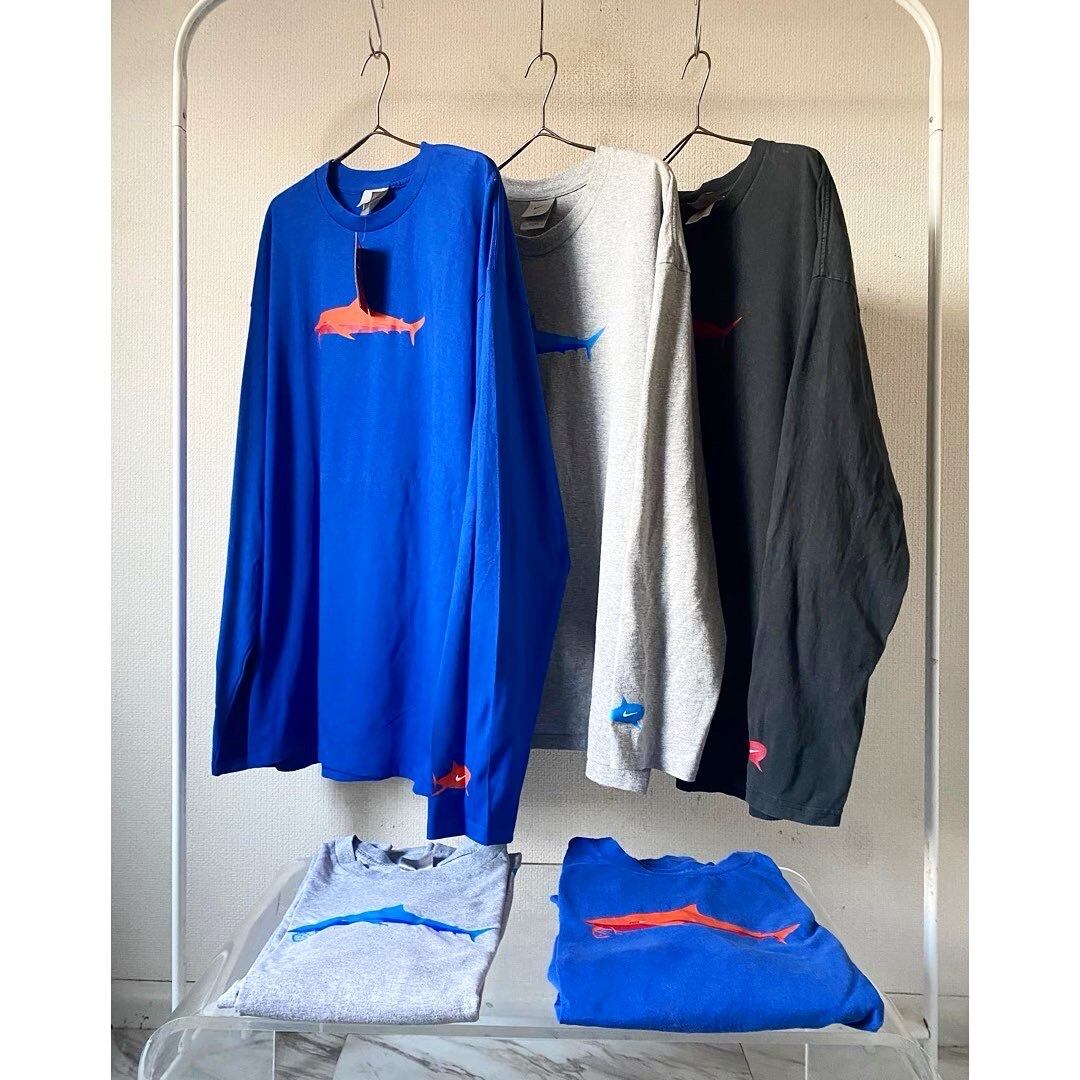フロント胸にシャークプリント 裾にもプリント ナイキっぽくないナイキ、良いですね 何故かブルーだけusa製 それ以外はメキシコ製