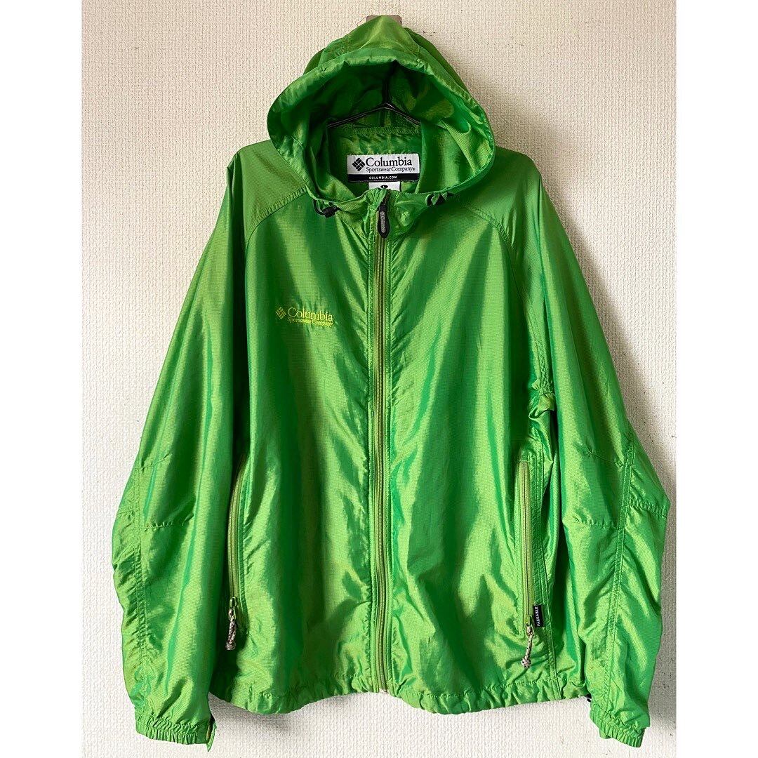 columbia nylon poly vivid green nylon jacket "玉虫色"