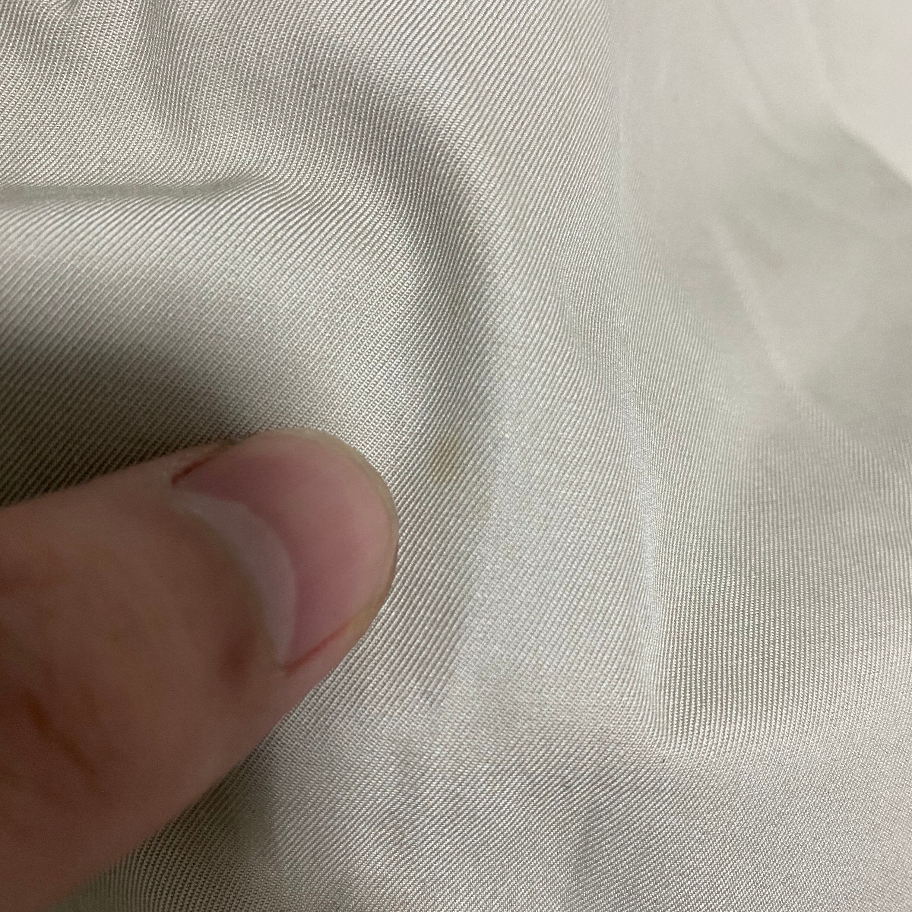 グレージュのパキッとしたポリコットンボディー ラグランスリーブなので体型問わず肩がストンと落ちるシルエット
