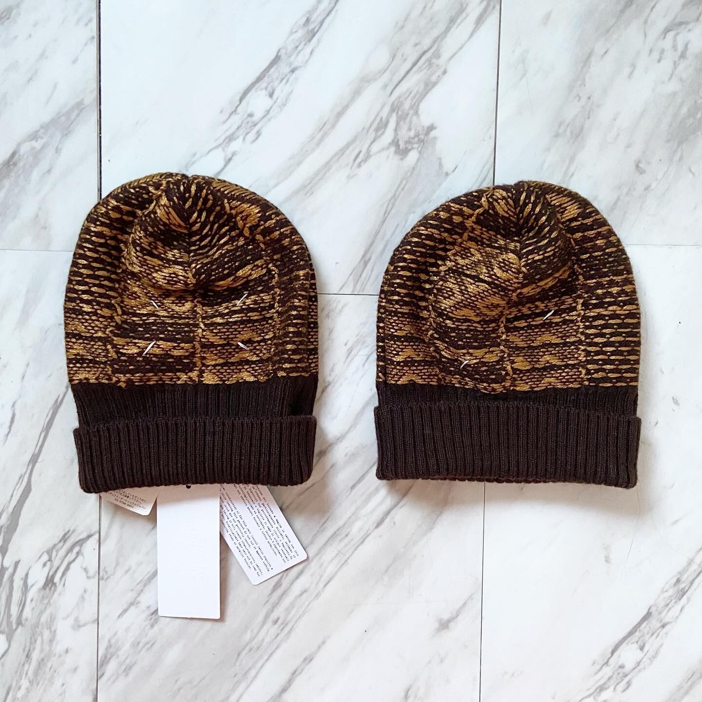 2015a/w Maison Martin Margiela gold & brown wool rayon knit cap
