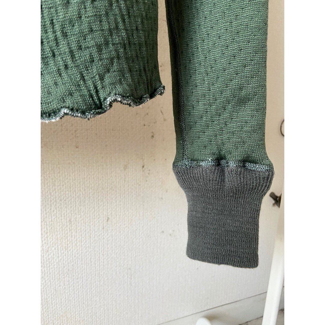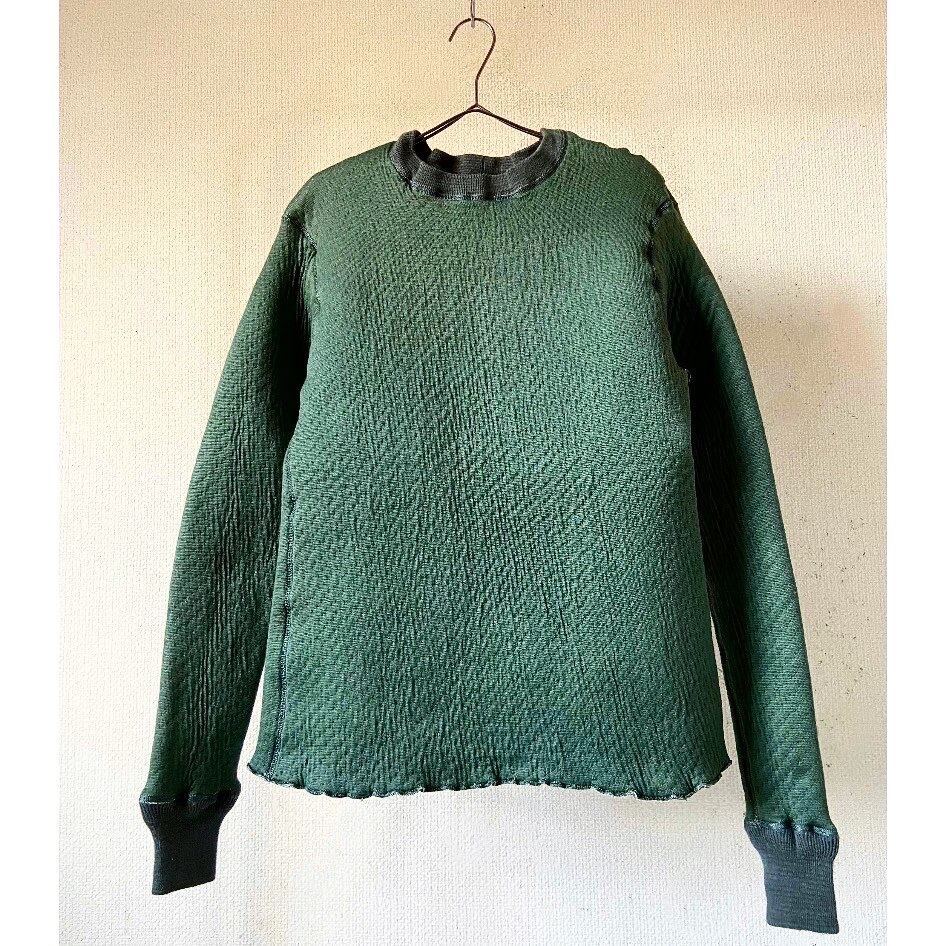パイロットが身体を温める為に来ていたボディースーツ これ以上ないくらいの肉厚地 ウェットスーツ、ボンディングの様な素材感に凸凹と加工された表面 セージグリーンカラー