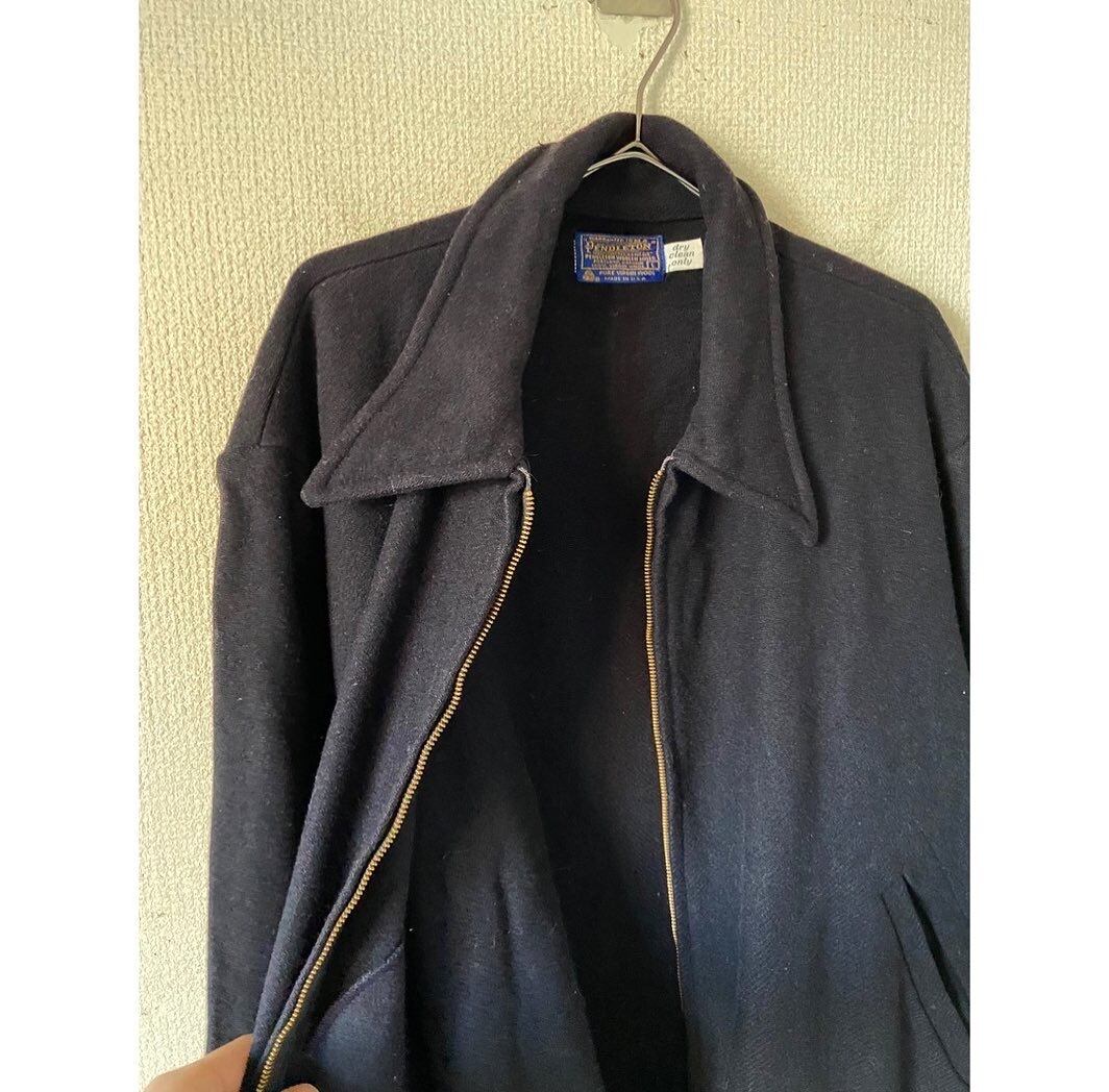 vintage 70s pendleton dark navy melton wool zip up jacket