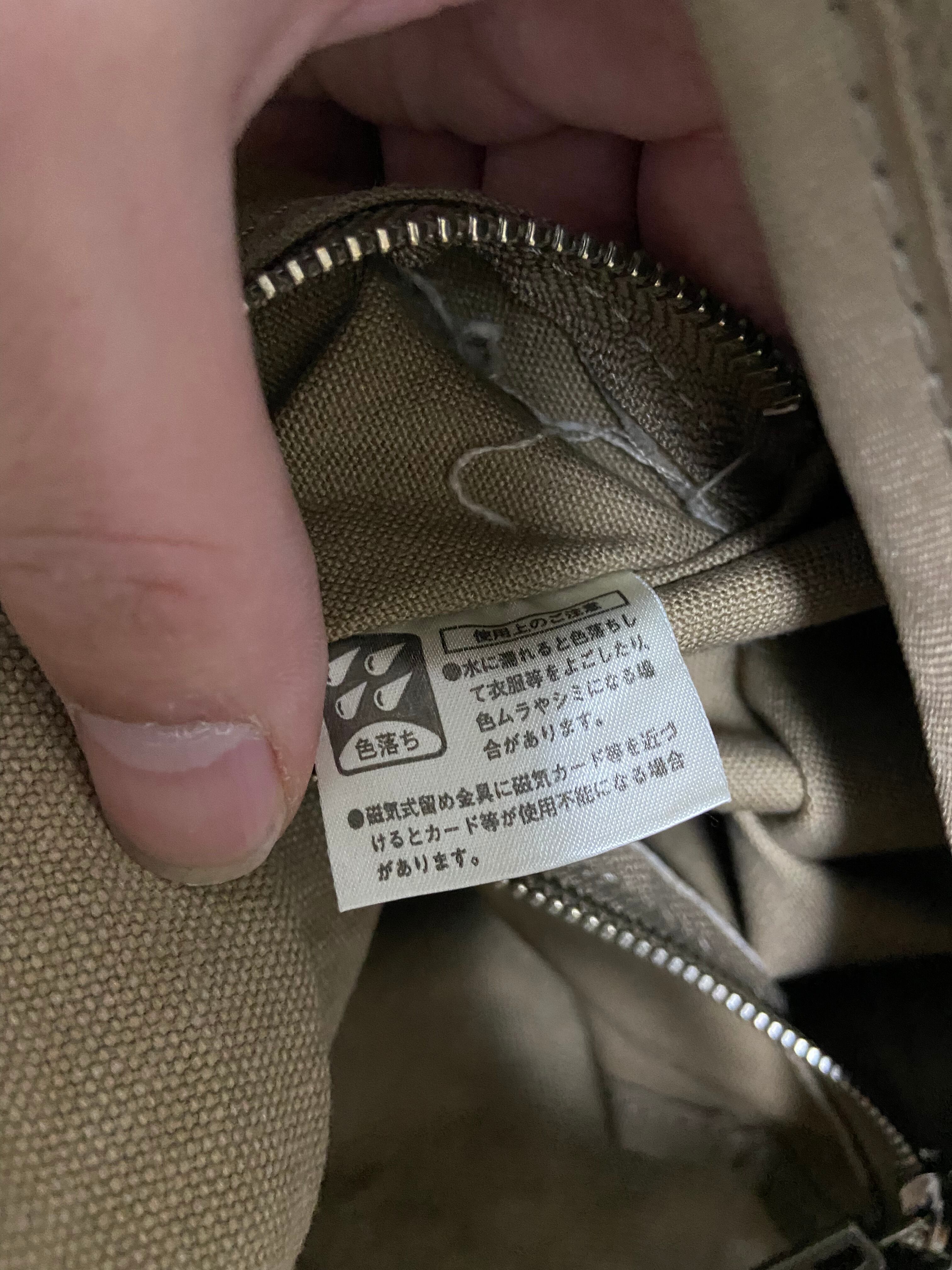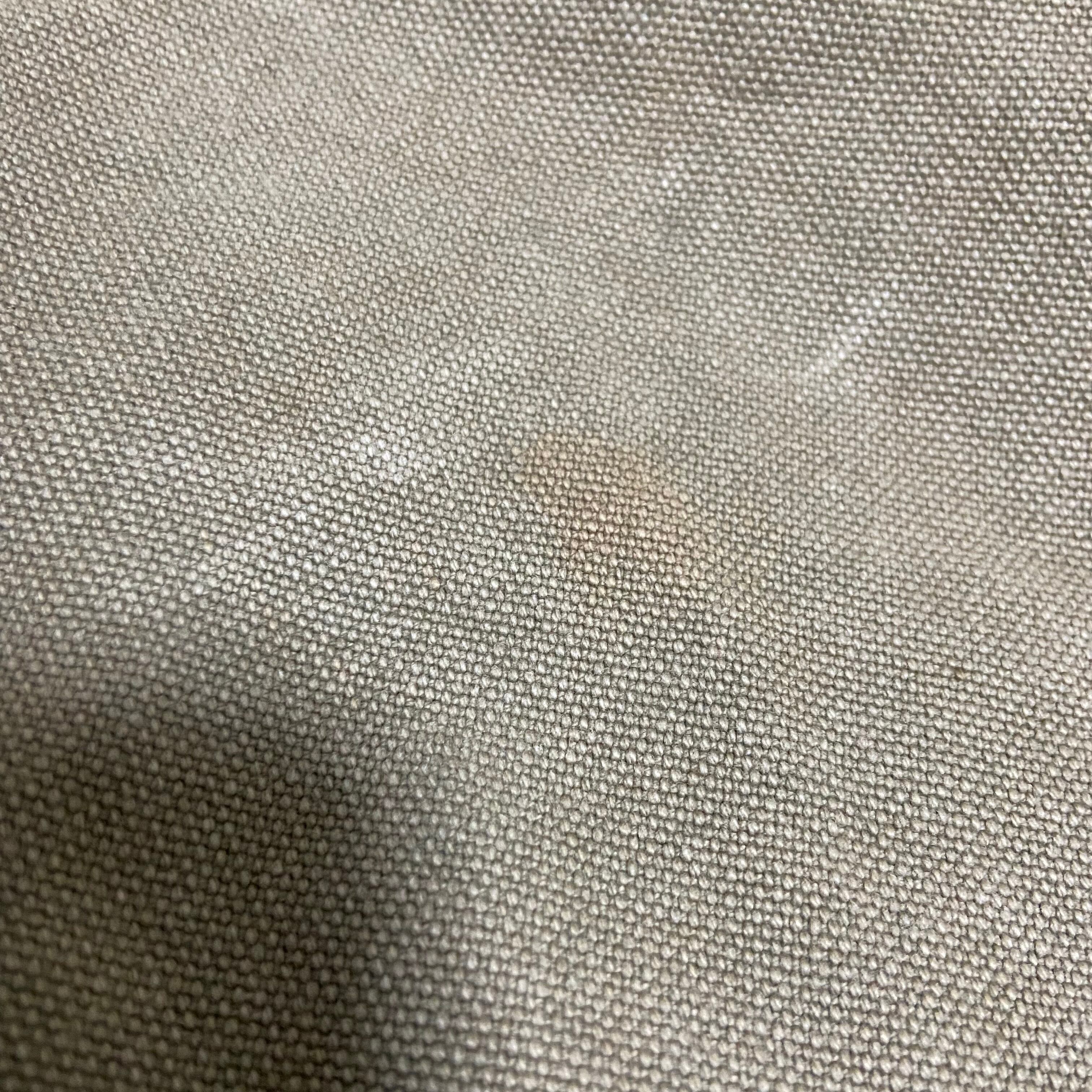ダックコットン特有のアタリ感 表面に小汚れ ベルト部分にシミ レザー部分に変色