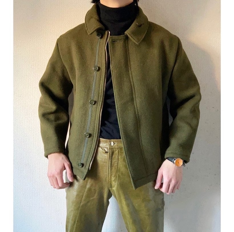 パイロットが着用する為、裾が邪魔にならない様に極端なショートレングスとなっています 目の細かいぎゅっと詰まったメルトンウール オリーブグリーン、モスグリーン系の高配色