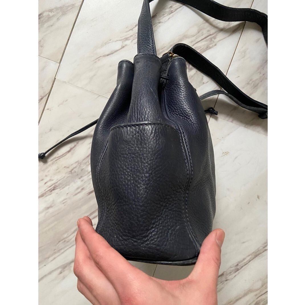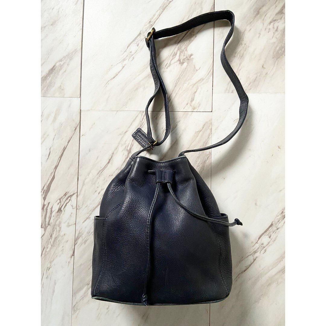 old coach navy leather kinchaku bag