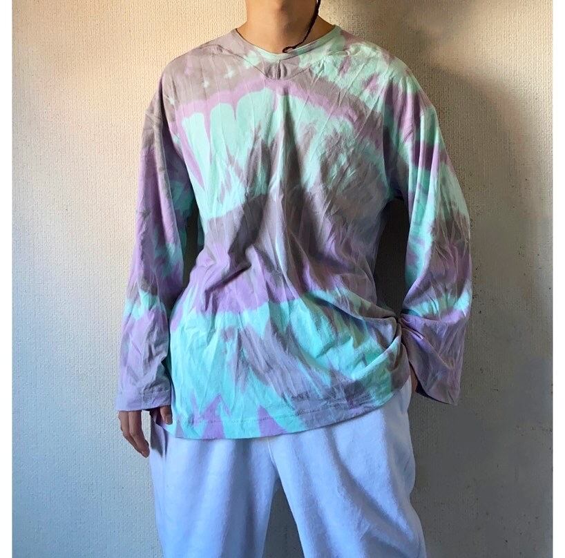 ペールトーンで構成された計算しつくされたタイダイ染め 浅めのvネック