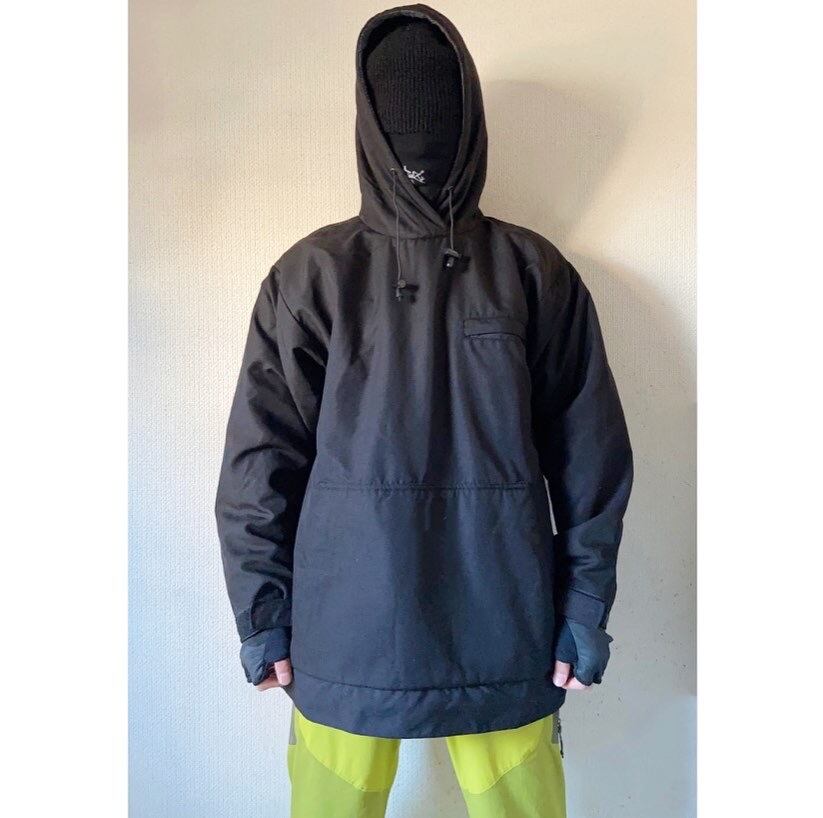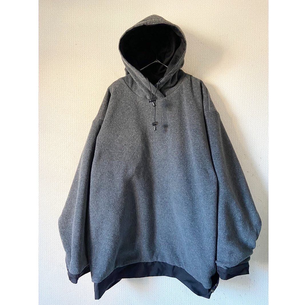 リバーシブル A面はブラックハードナイロンシェル 胸ジップポケットにフロントにジップ式のカンガルーポケット B面はチャコールグレーフリース パーカーに隠れてタグは見えません