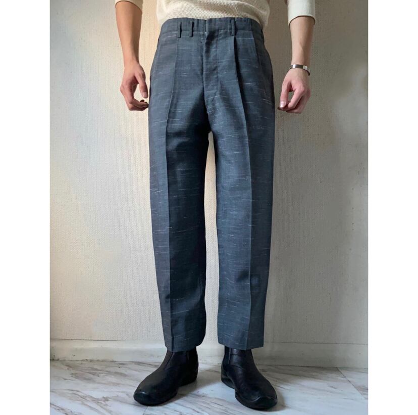 50s〜60s kasuri design 2-tuck light gray wool slacks