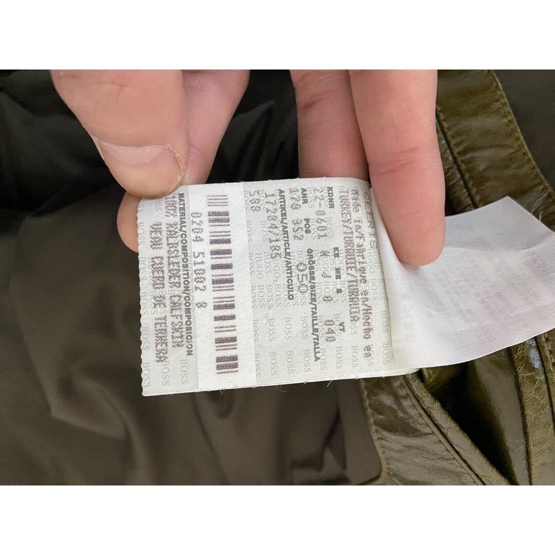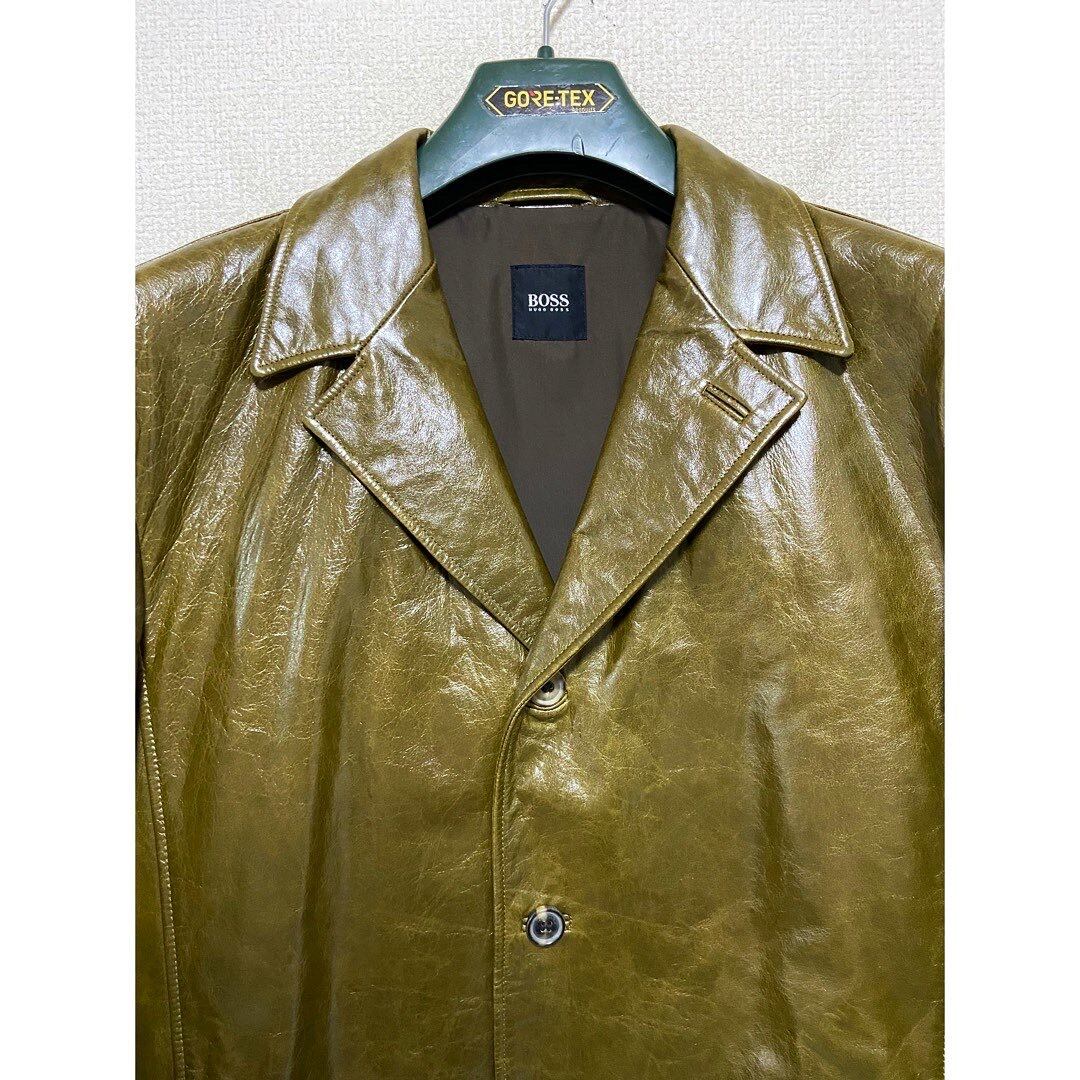 十分に鞣された艶やかな光沢を放つオリーブグリーンカウレザー