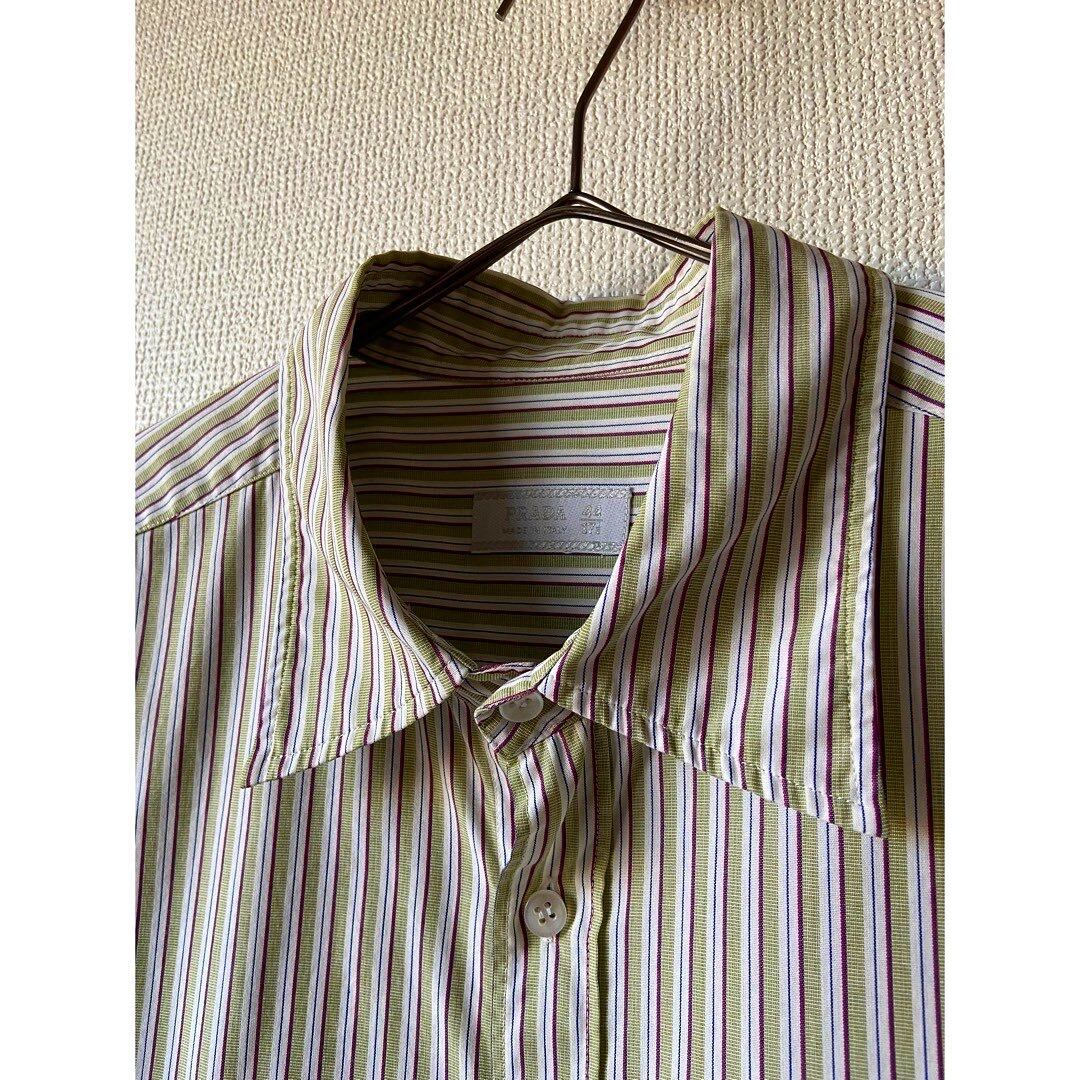 00s prada green stripe cotton over sized dress shirt