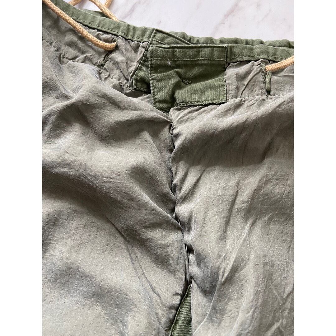 size : 表記medium/reguler(実寸l程度)ウエスト50〜104(紐で絞れます)股上27(ウエスト最上部から計測しています)股下58.5わたり33裾幅25サイドの全長84