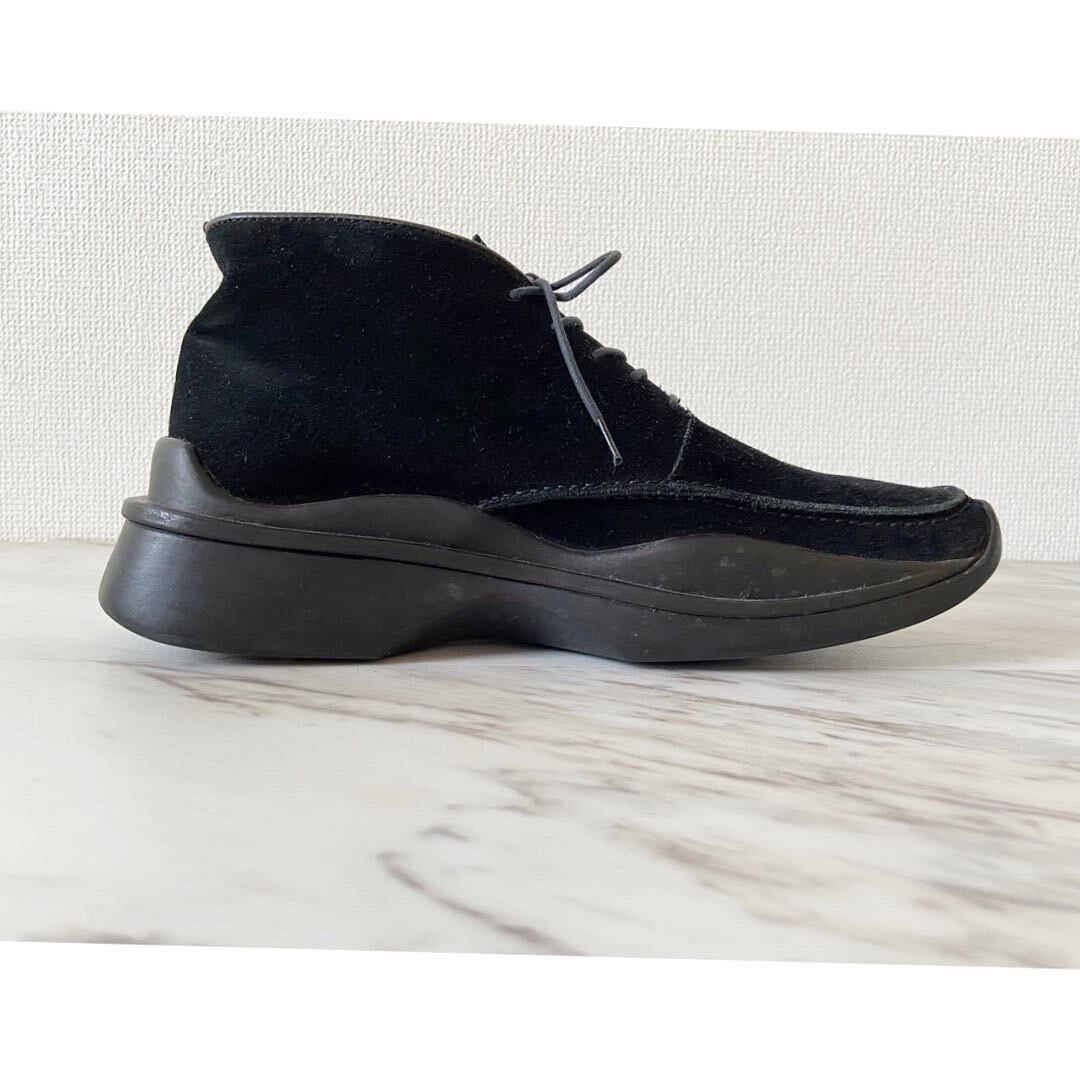 詳細不明 上質なブラックスウェード 超ボリューミーな疲れ知らずのソール ヒール部分からソールがはみ出た感じがまた良い