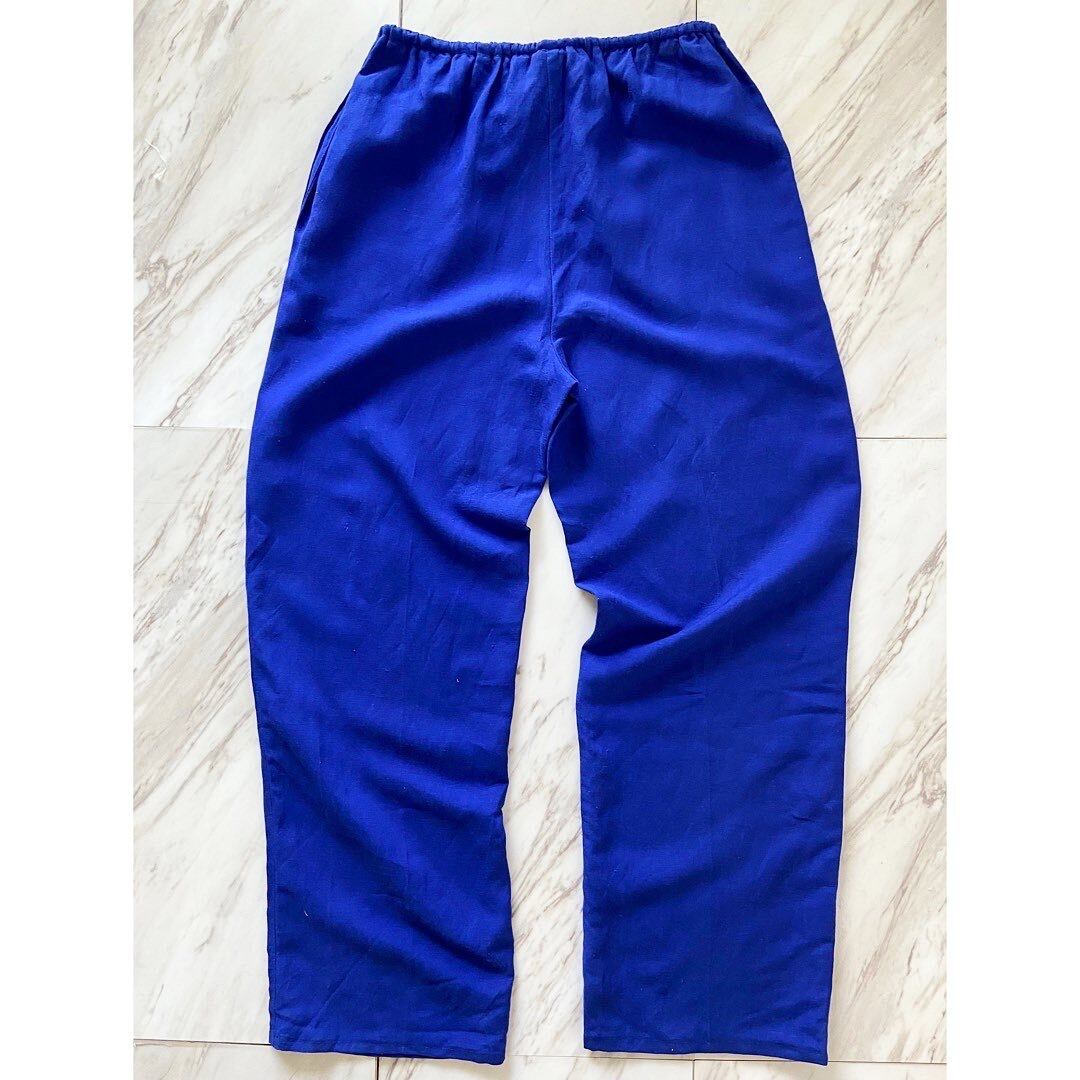 深い深いロイヤルブルー リネンパンツで寒色ってなかなか珍しいですよね