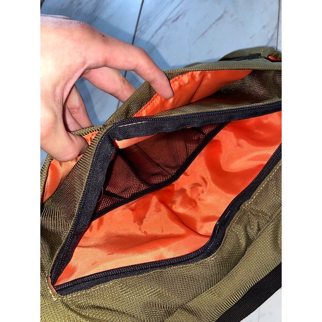 計15個の多重ポケット フロントはベルクロ仕様、開けるとマチ付き立体ポケット サイドにペットボトルを入れる用のポケット 裏にもジップポケットが付いています ベルト部分にも立体ポケット