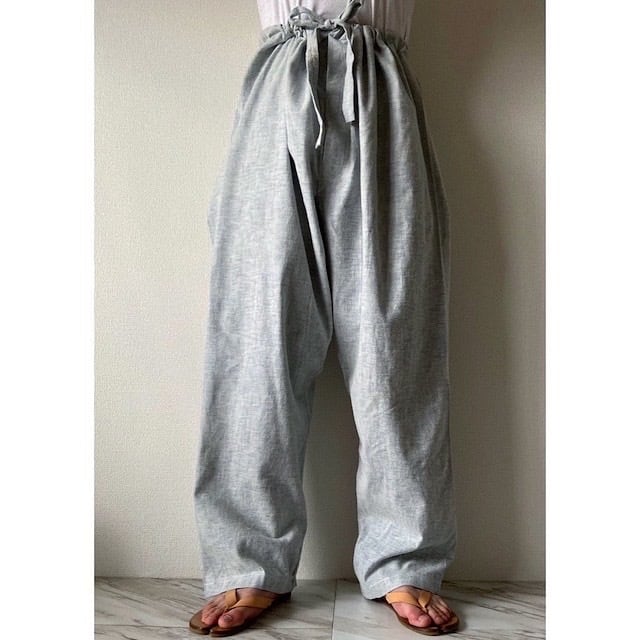 さすがスリーピングパンツ、ふわふわのフランネルコットン 最高の履き心地 シャンブレーブルーの様な 掠れたブルー×ホワイト