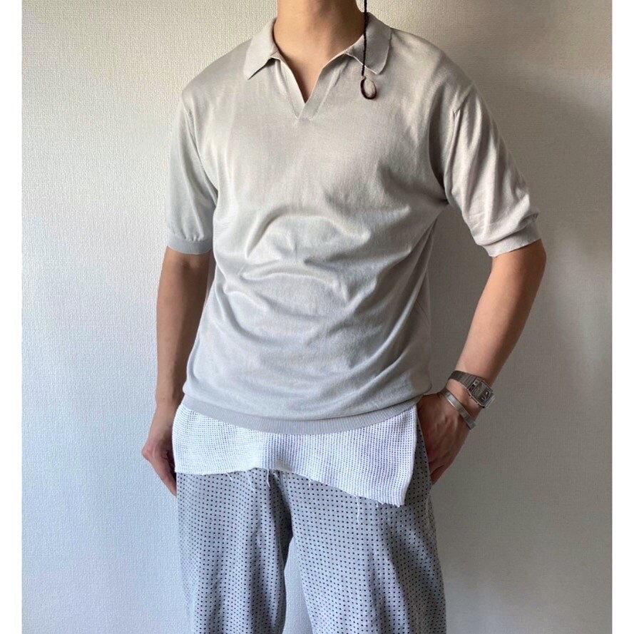スキッパーポロのアップデートモデル。肩幅のシルエットの設定を見直したことで、着用した際の襟元の収まりも格段に美しくなりました。スキッパーデザインがトレンドでもあり、お勧めの一着です