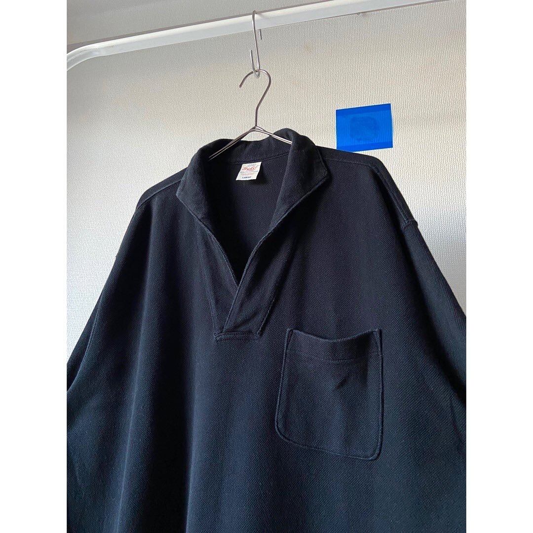 ユーロヴィンテージのフィッシャーマンシャツを彷彿とさせる変型スキッパーネック ショールカラーとスキッパーを合わせた様な感じです 立てても良さそう
