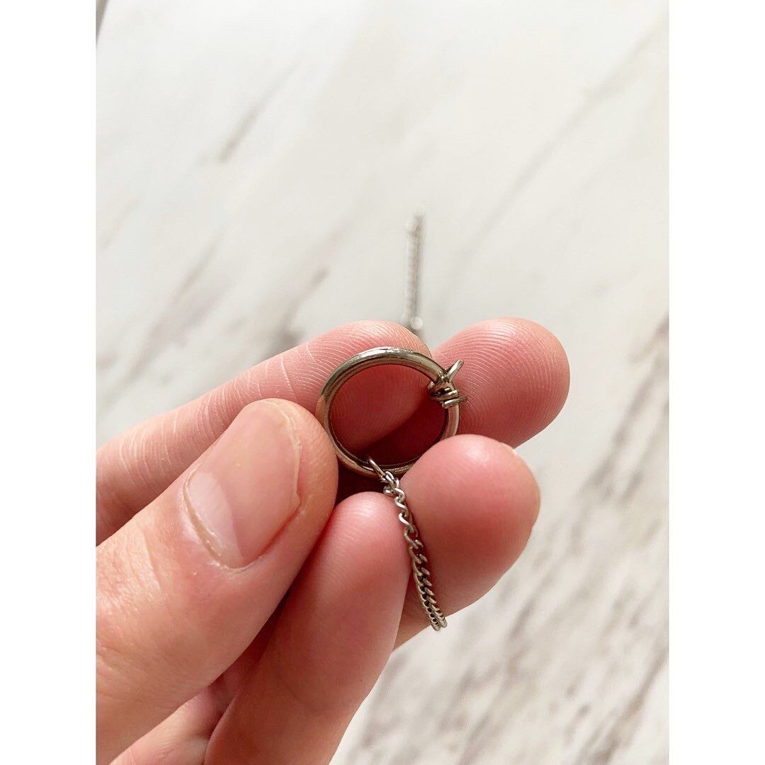 今っぽい短めのネックレス 細いチェーン部分からリング、そしてバーへと繋がります