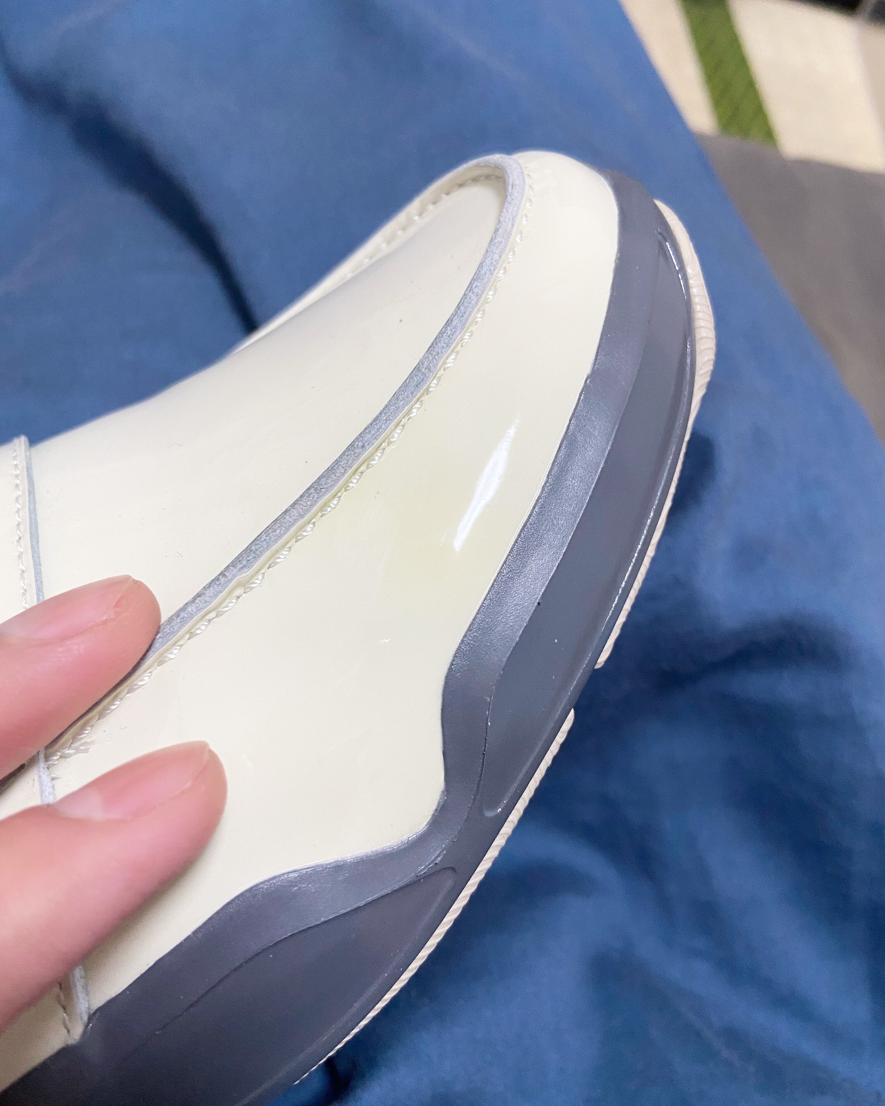 シール付きデッドストック ホワイトエナメルの靴だと少しやり過ぎな感じがあるので、このくらいを求めている方多いのではないでしょうか