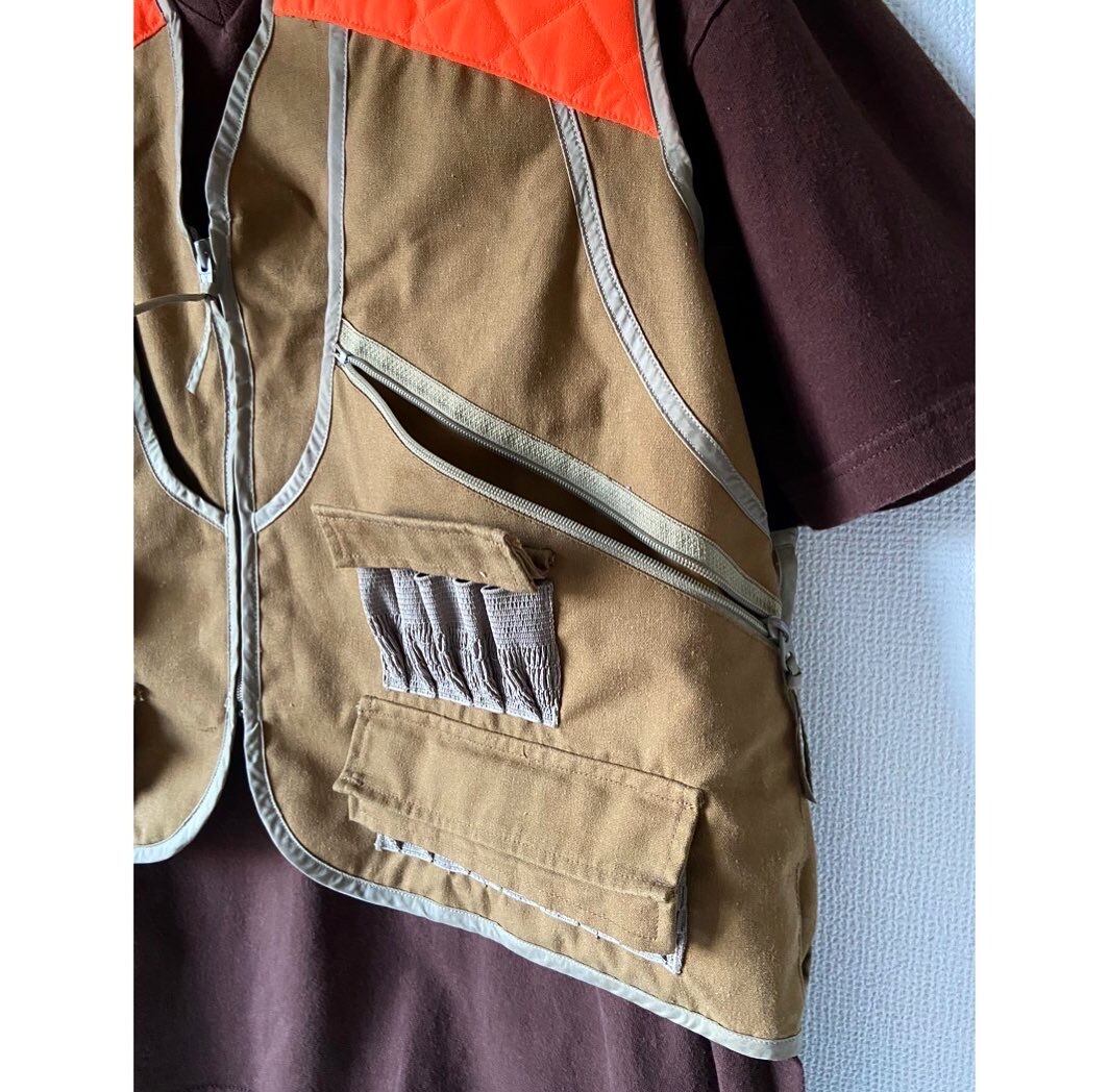 80s〜90s made in Malaysia vivid orange quilting cotton switching hunting vest